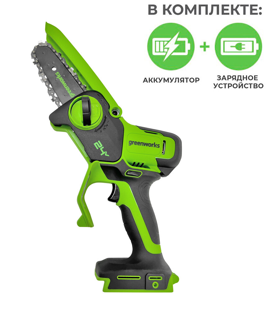 Пила цепная аккумуляторная greenworks G24MCS10 24V с АКБ 2 А*ч и ЗУ (2008207UA) интересное: