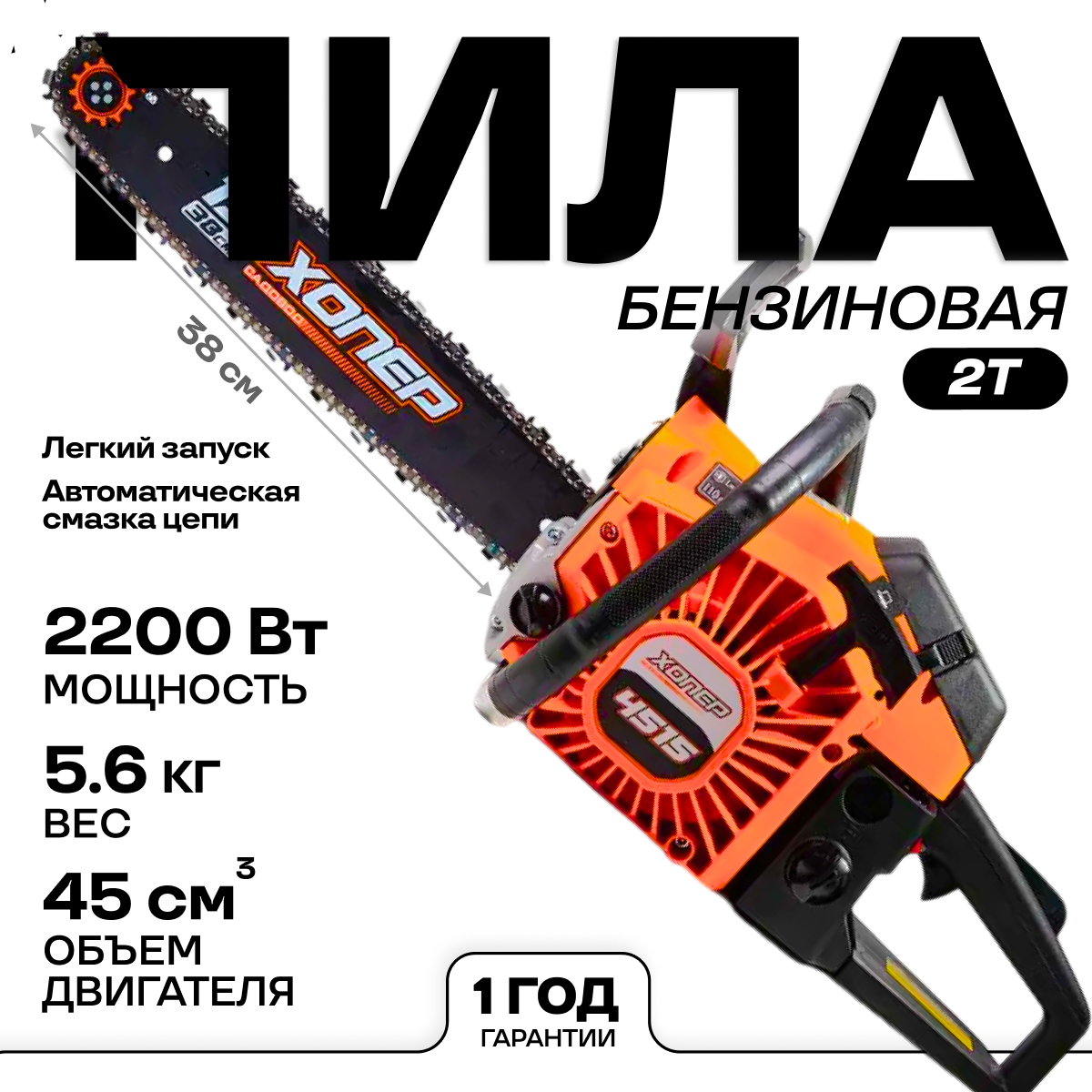 Бензопила Хопер 4515 2,5 л.с.