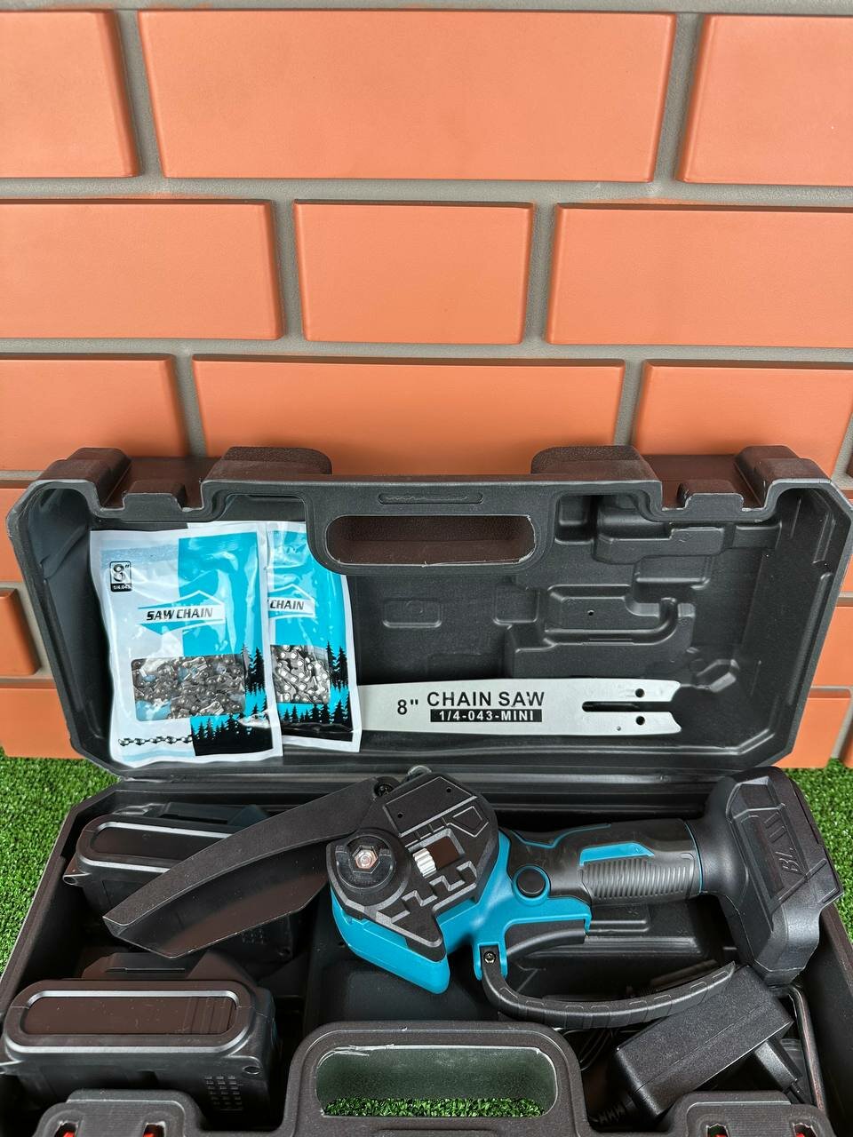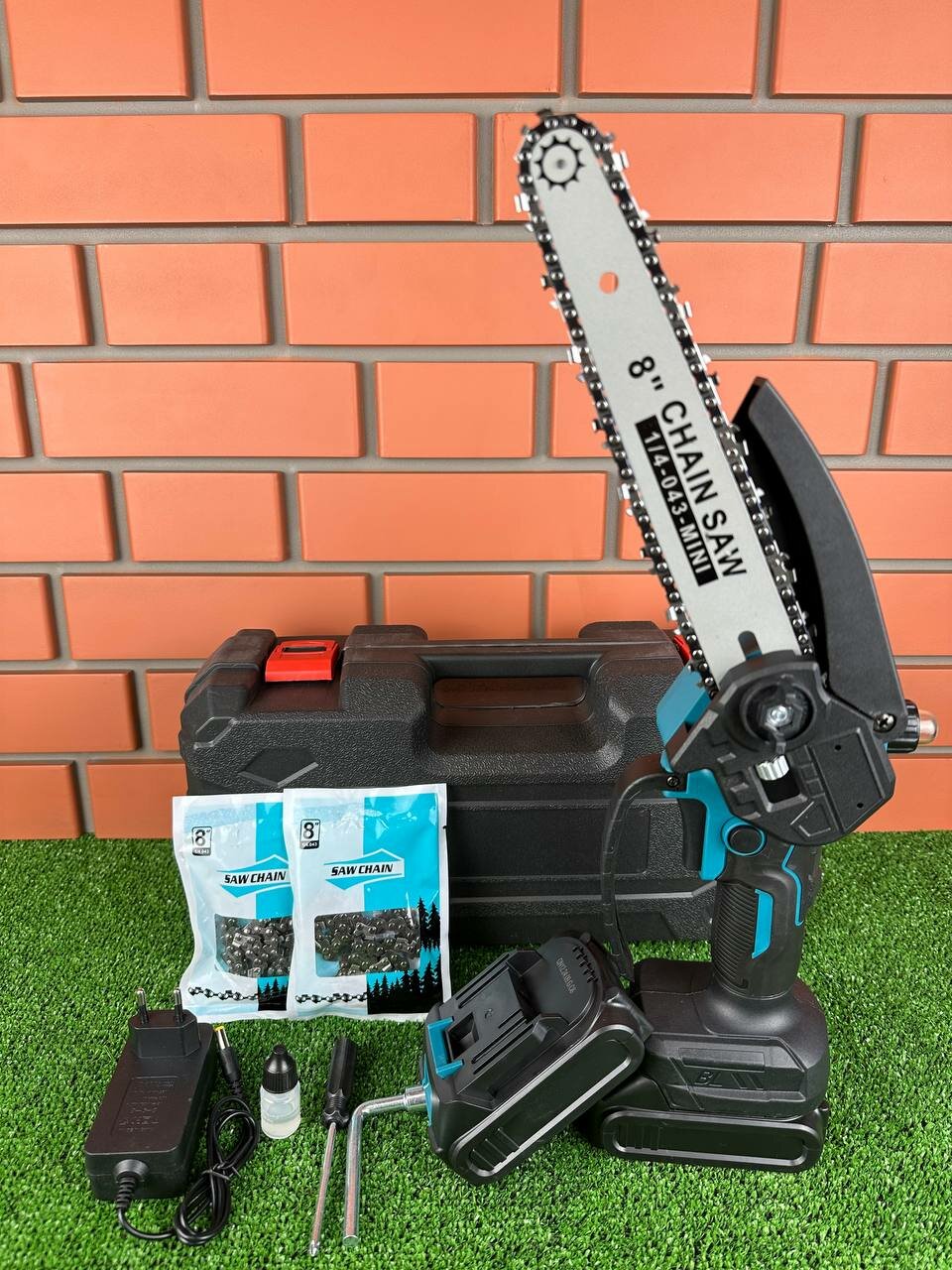 | Комплект поставки | Комплектация +цепная пила +2 аккумулятора +2 цепи +шина 8 дюймов +зарядное устройство +инструкция +перчатки |