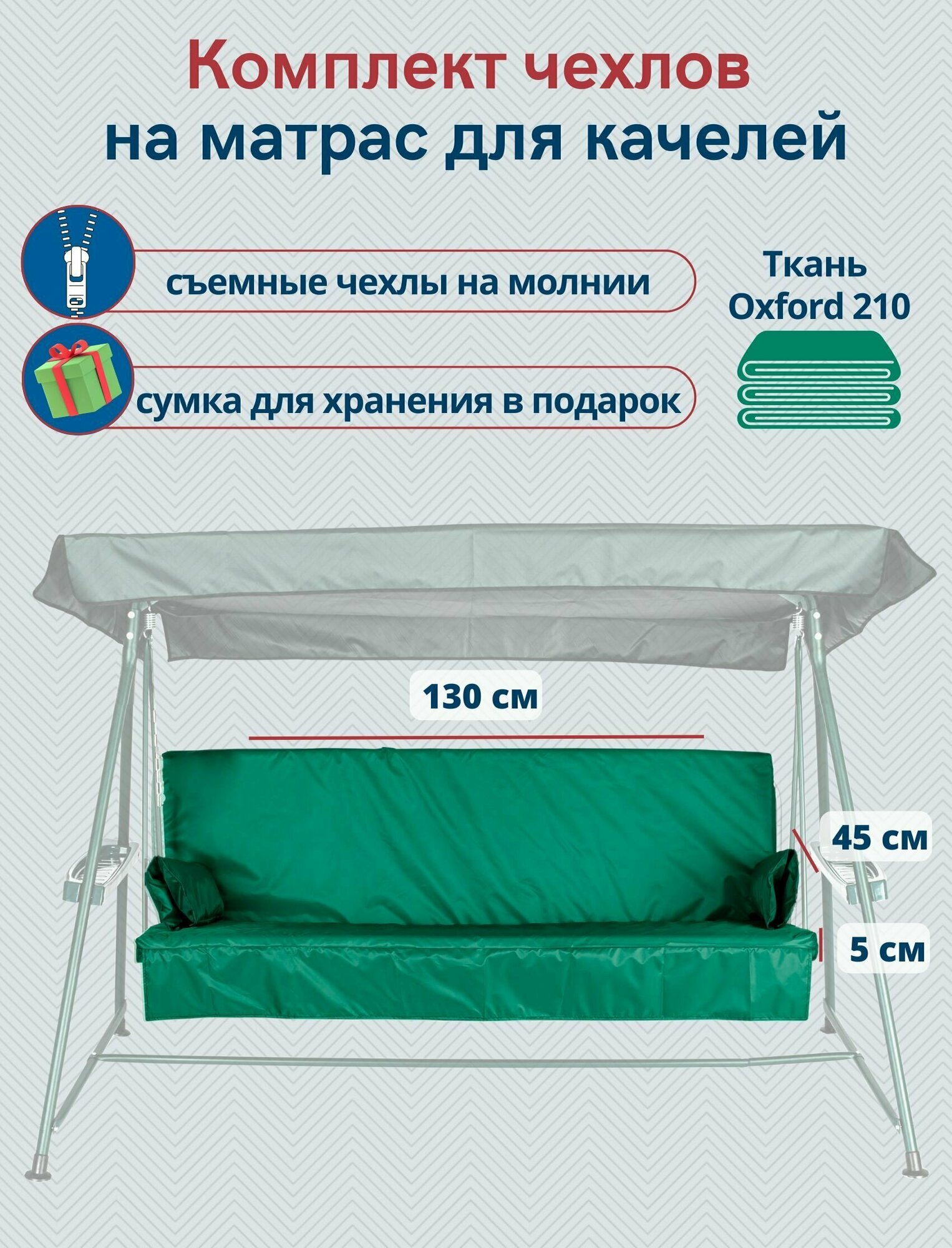 СохранитьЧехол съемный на матрас для садовых качелей, комплект сиденье+спинка, 130x45х5 см, зеленый интересное: