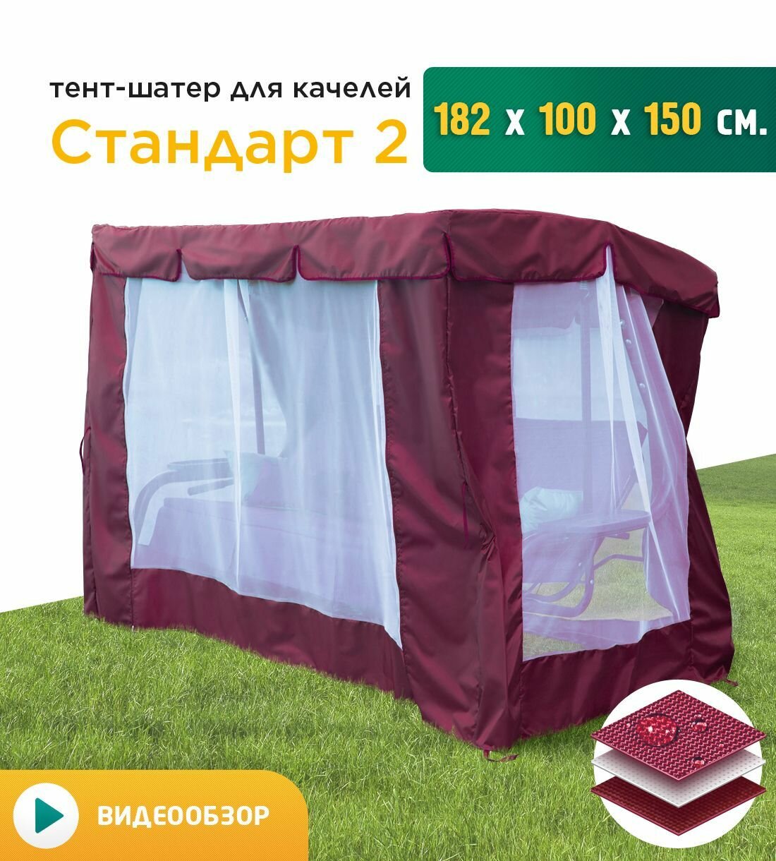 Тент-шатер с сеткой для качелей Стандарт 2 (182х100х150 см) бордовый интересное: