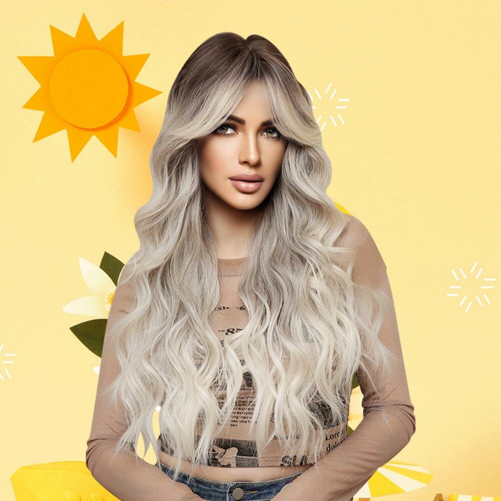 Купить Женский парик, Новый большой волновой парик с черной челкой и градиентными серыми длинными локонами