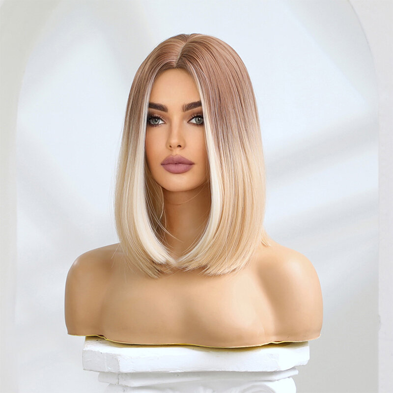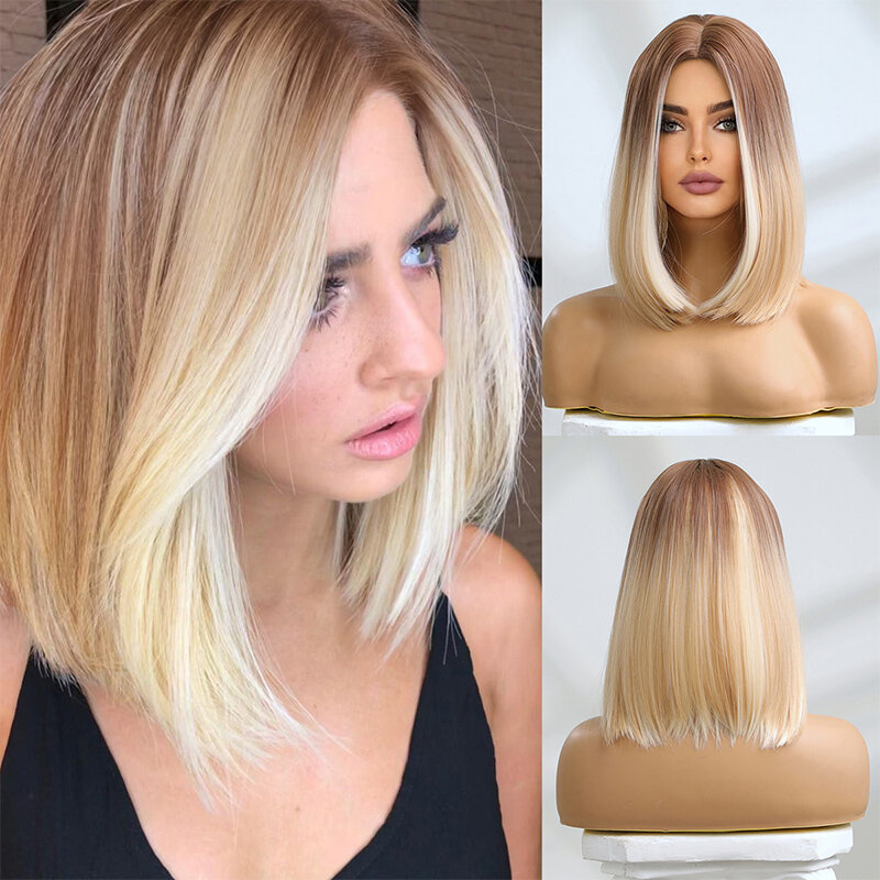 Купить Женские короткие прямые синтетические парики «боб» для женщин, коричневый блондин с эффектом омбре, парик для косплея, вечерние, повседневные, термостойкие волокна волос