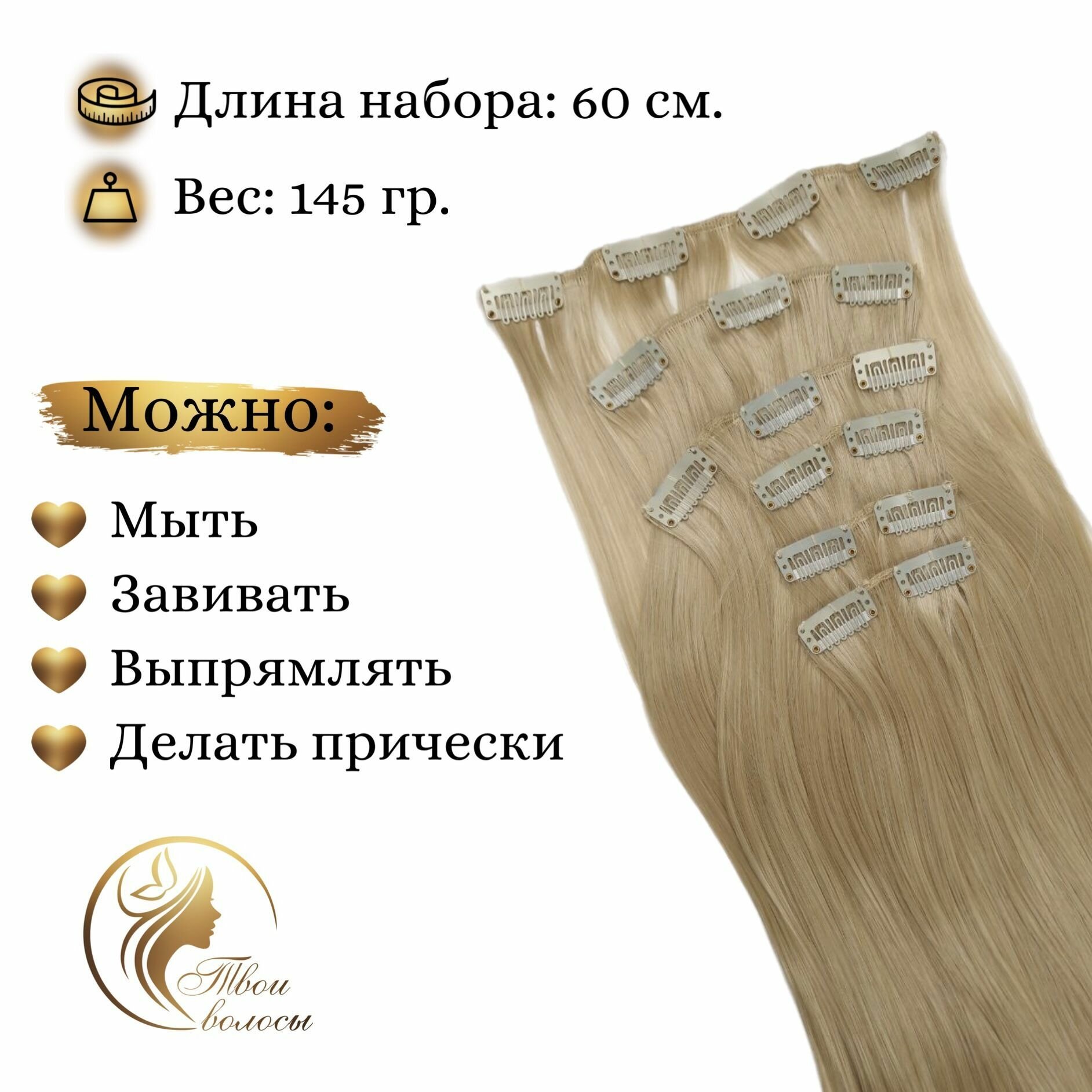 Накладные волосы, пряди на заколках-клипсах, 24/27 Пепельно-пшеничный