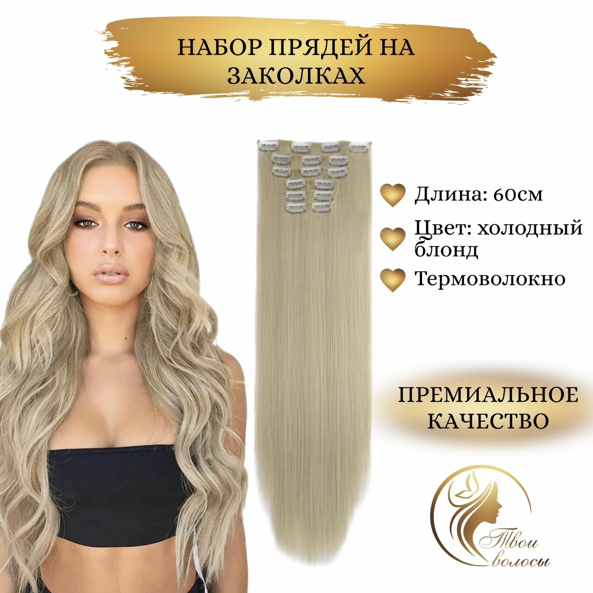 СохранитьНакладные волосы, пряди на заколках-клипсах, 24/613 Пепельный блонд интересное: