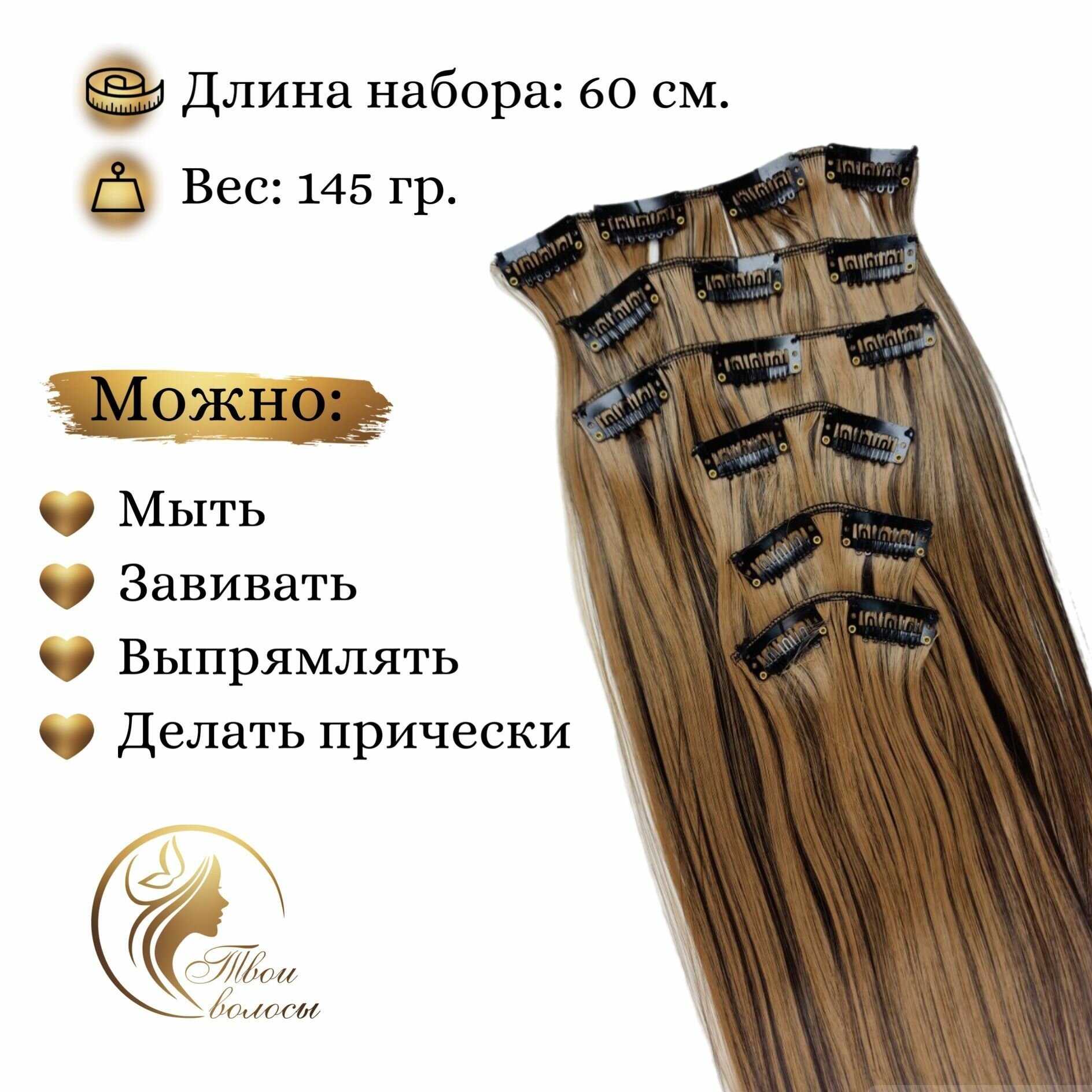 Накладные волосы, пряди на заколках-клипсах, шиньон, 4/30 русый