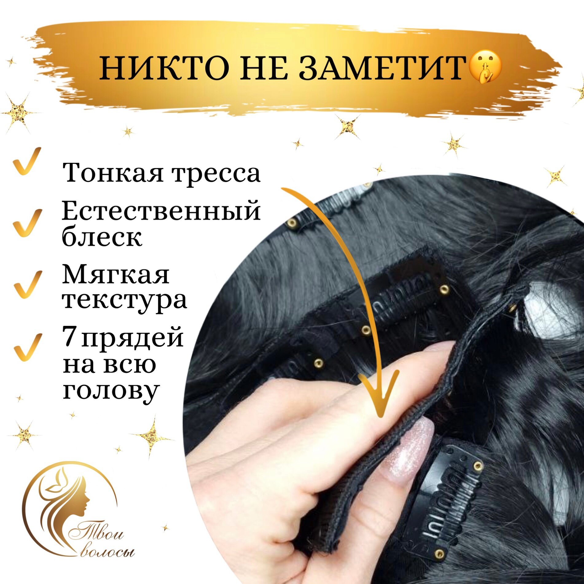 Твои Волосы - Накладные прямые длинные волосы на клипсах, чёрный