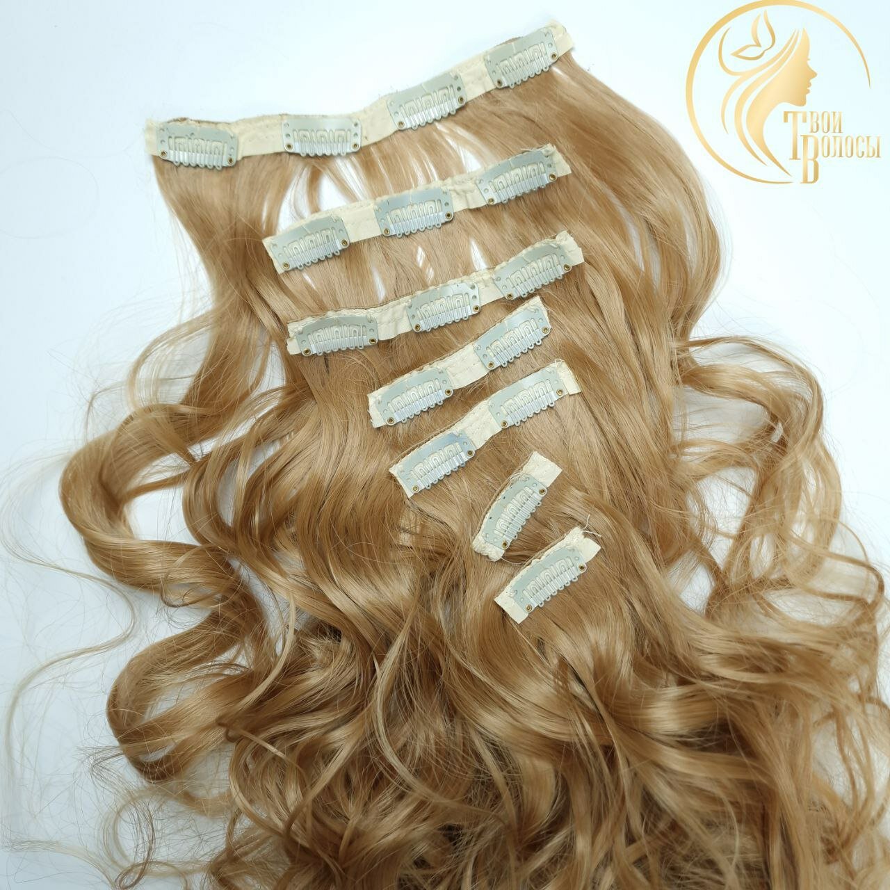 Купить Накладные волосы локонами 65 см, пряди на заколках-клипсах, Пшеничный (27 тон)
