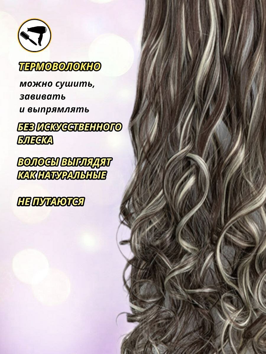 Волосы на заколках, прядь 60см, мелированный коричнево белый