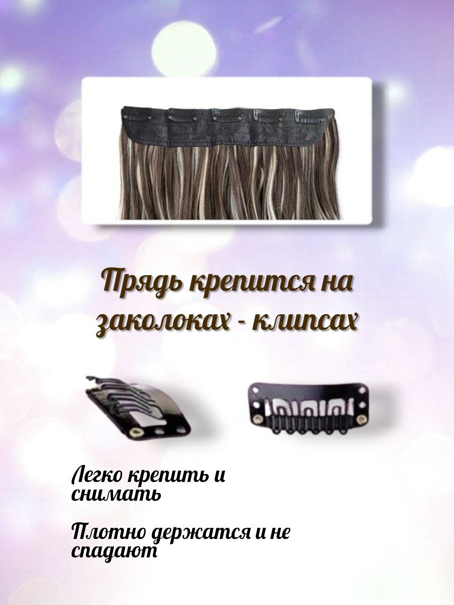 Волосы на заколках, прядь 60см, мелированный 10т