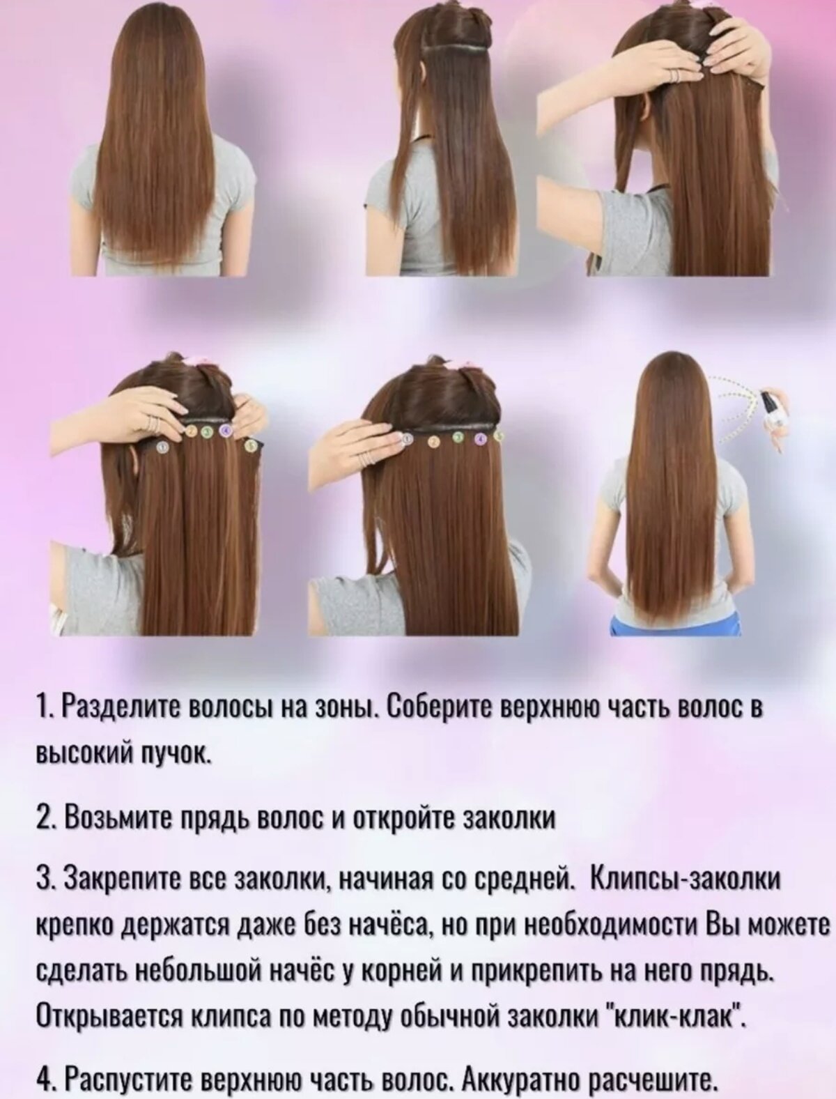 Волосы на заколках, прядь для наращивания волос 60см, шоколад