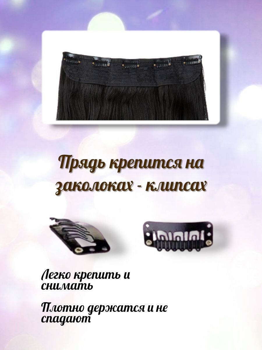 Волосы на заколках, прядь 60см, чёрный 1B