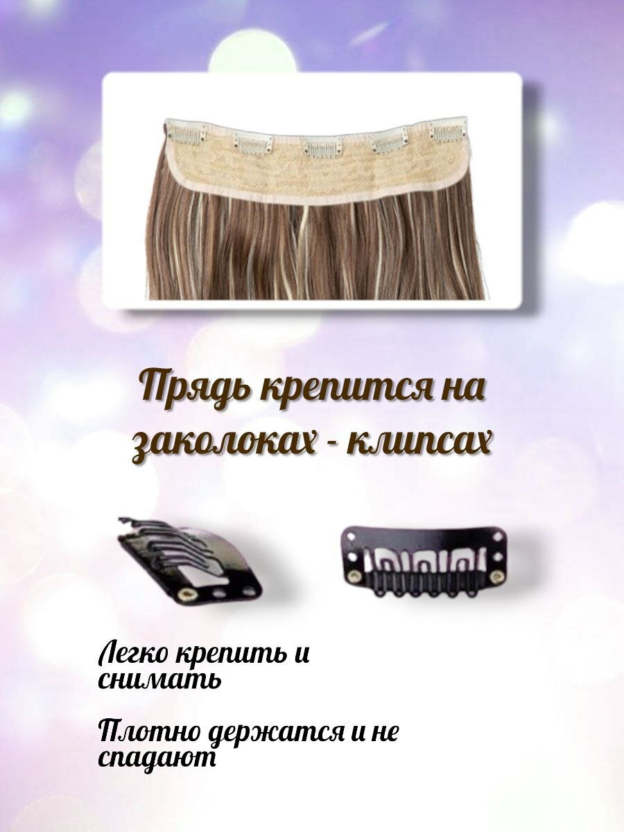 Волосы на заколках, прядь 60см, русый