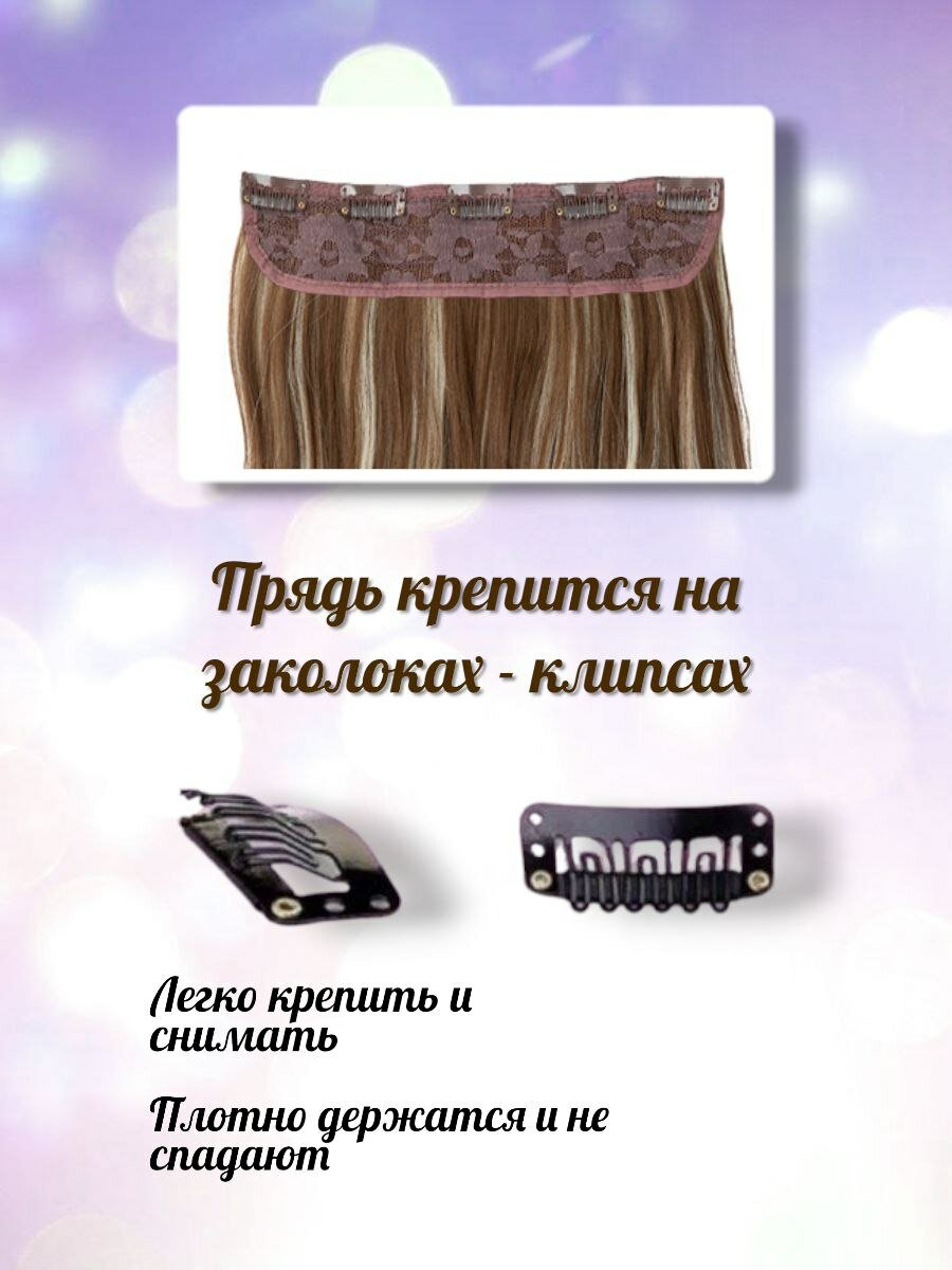 Волосы на заколках, прядь 60см, русый