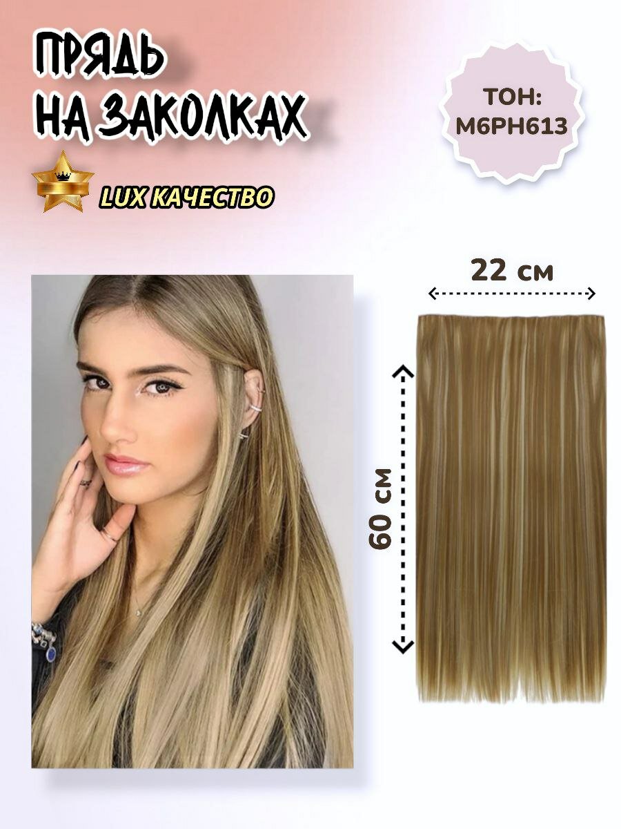 Волосы на заколках, прядь 60см, блондин 22/613
