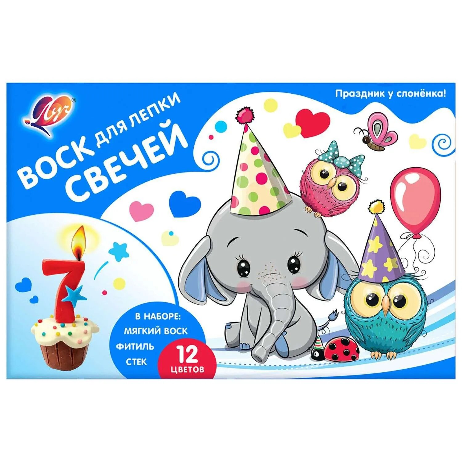 Купить Набор с воском для лепки свечей "Праздник у слонёнка" 12 цв.