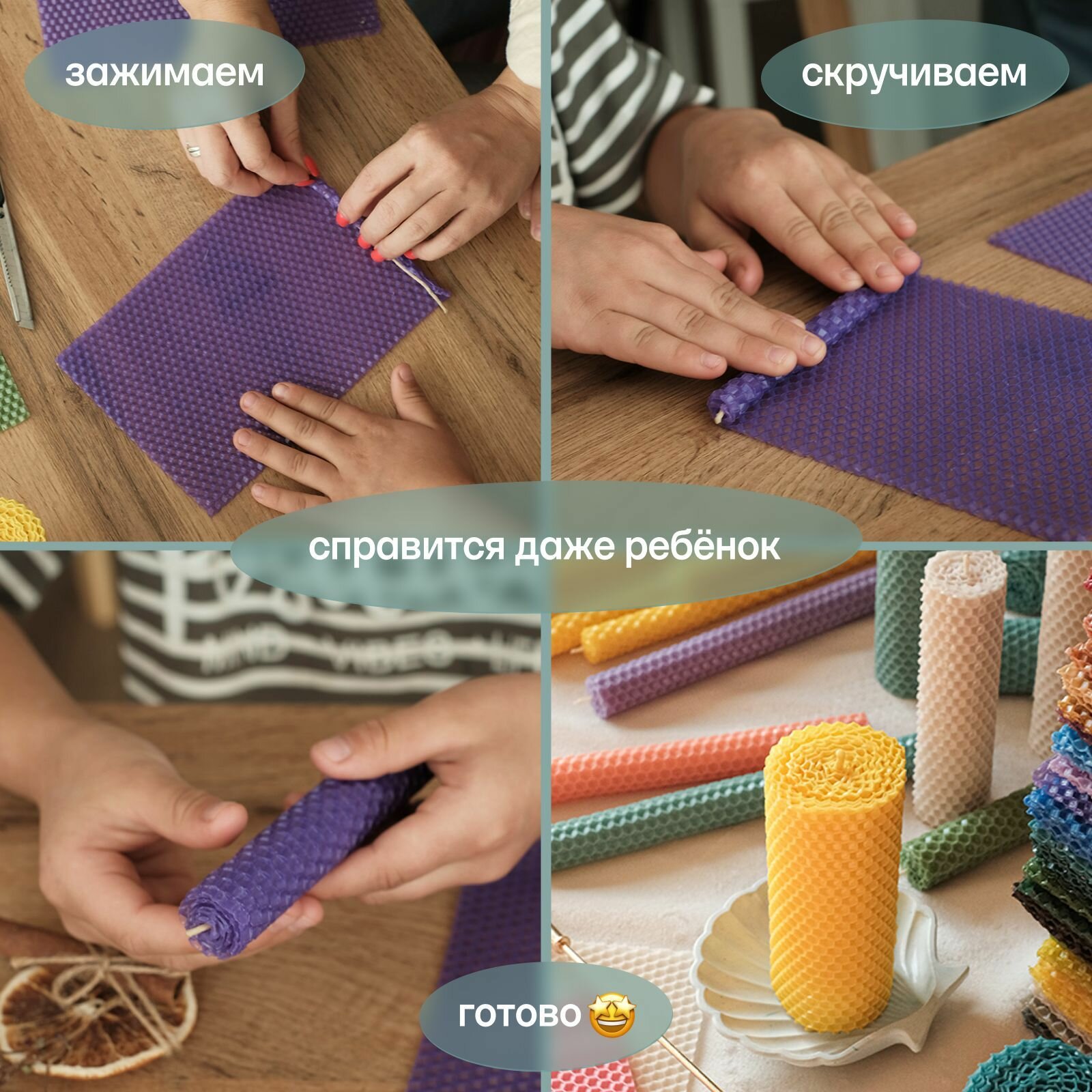 Вощина для свечей цветная медовая, Фитиль, Подробная инструкция, 12 листов 20х13 см, Набор для творчества, Цветные восковые листы интересное:
