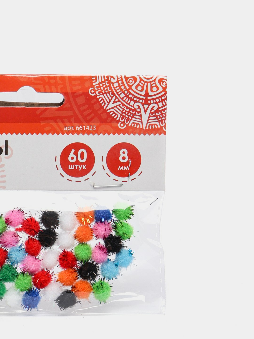 Купить Помпоны для творчества, блестящие, 10 цветов, 8 мм, 60 шт., остров сокровищ, 661423
