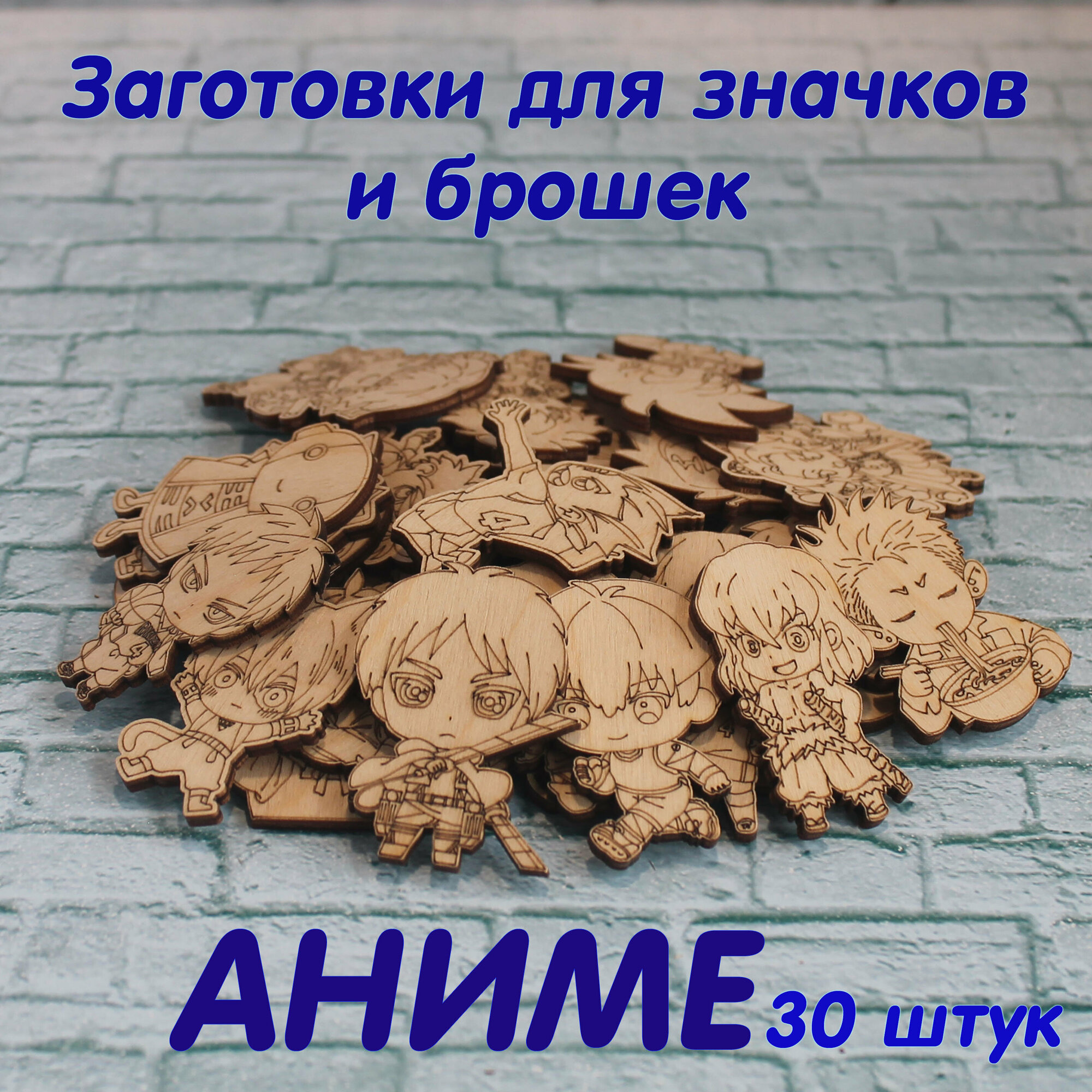 Купить Деревянные заготовки для творчества, для значков, магнитов, брошей. Набор "Аниме" из 30 шт