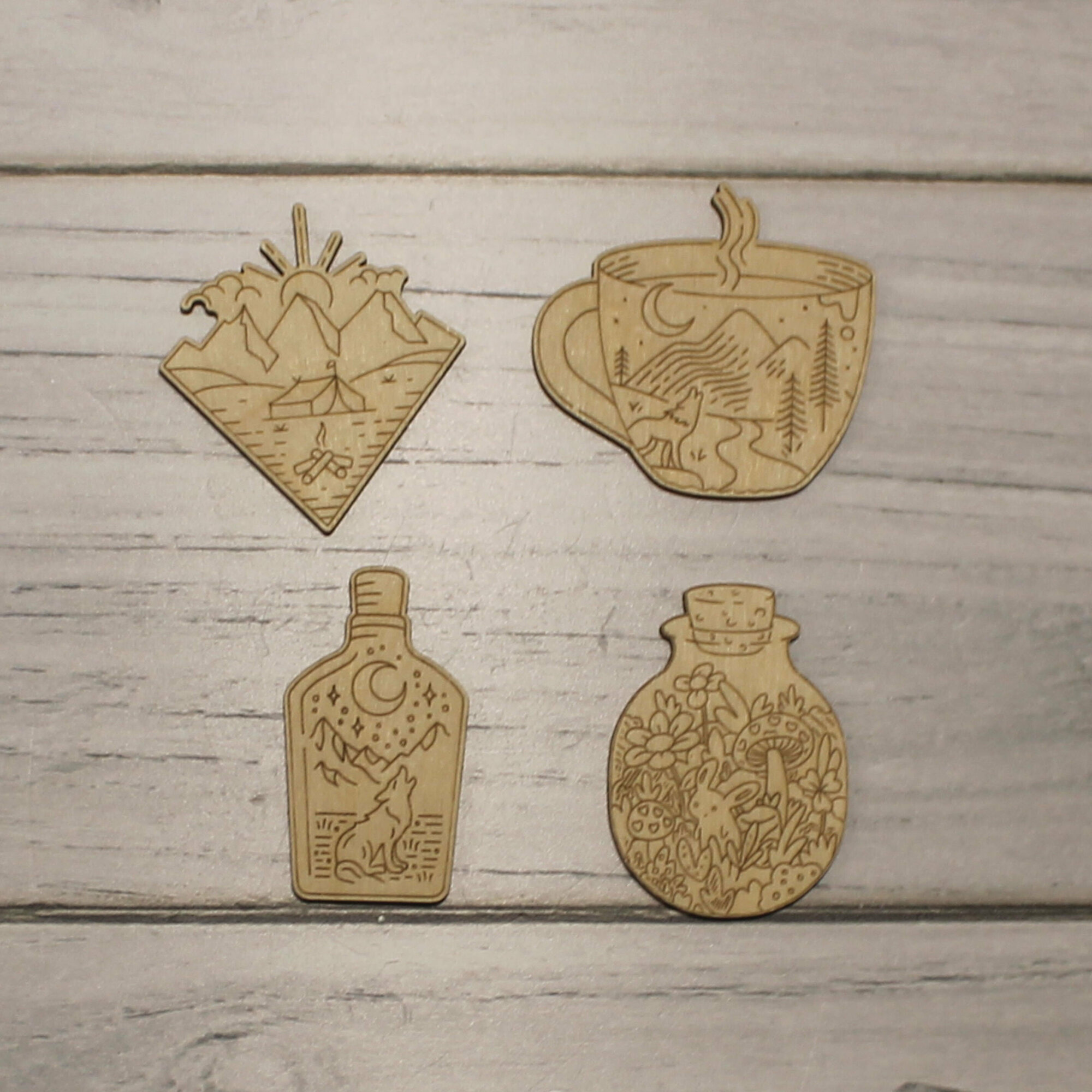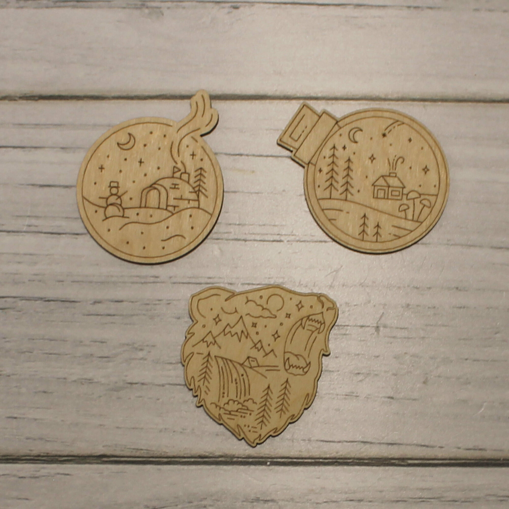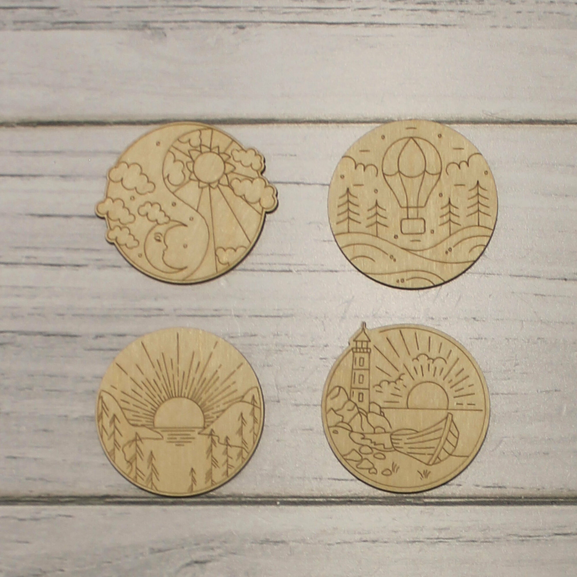 Купить Деревянные заготовки для творчества, для значков, магнитов, брошей. Набор "Природа" из 30 шт