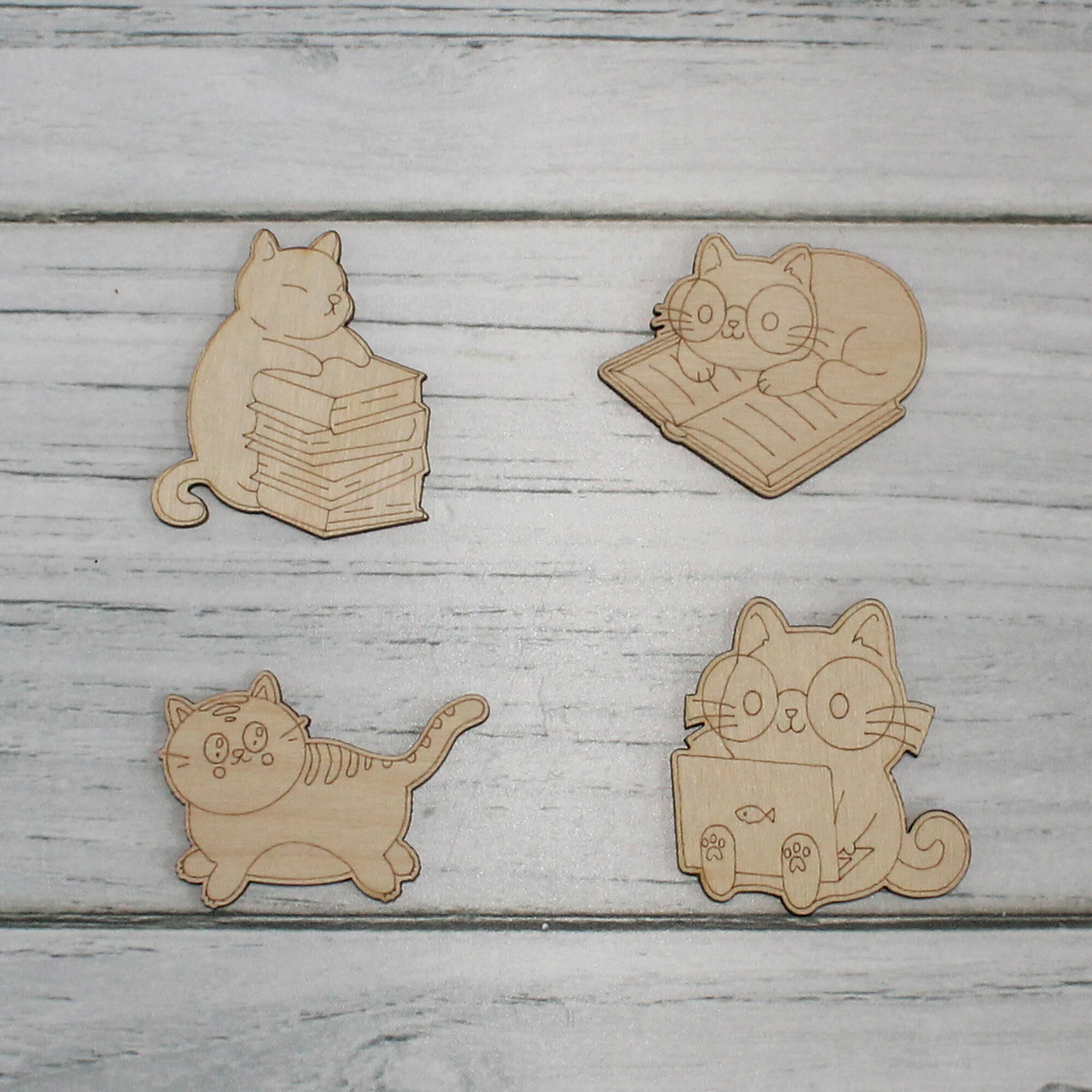 Деревянные заготовки для творчества, для значков, магнитов, брошей. Набор "Котики №2" из 30 шт