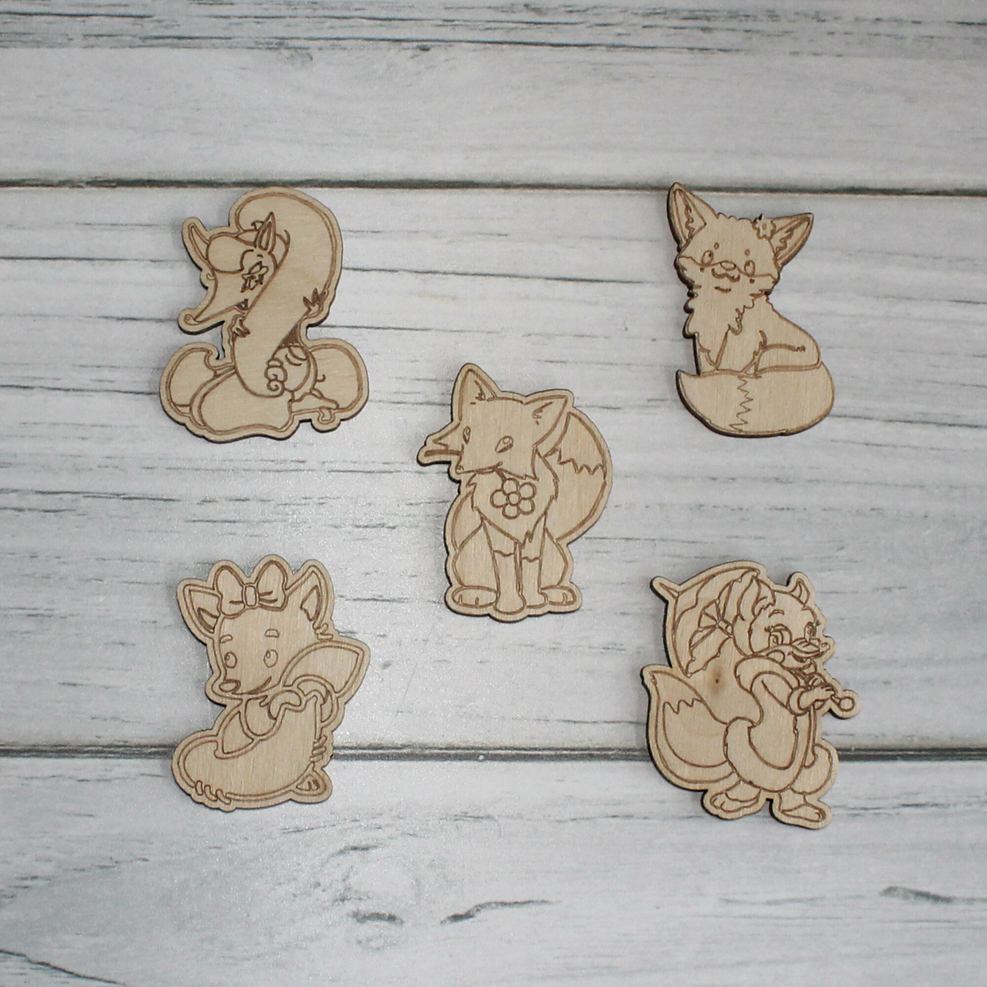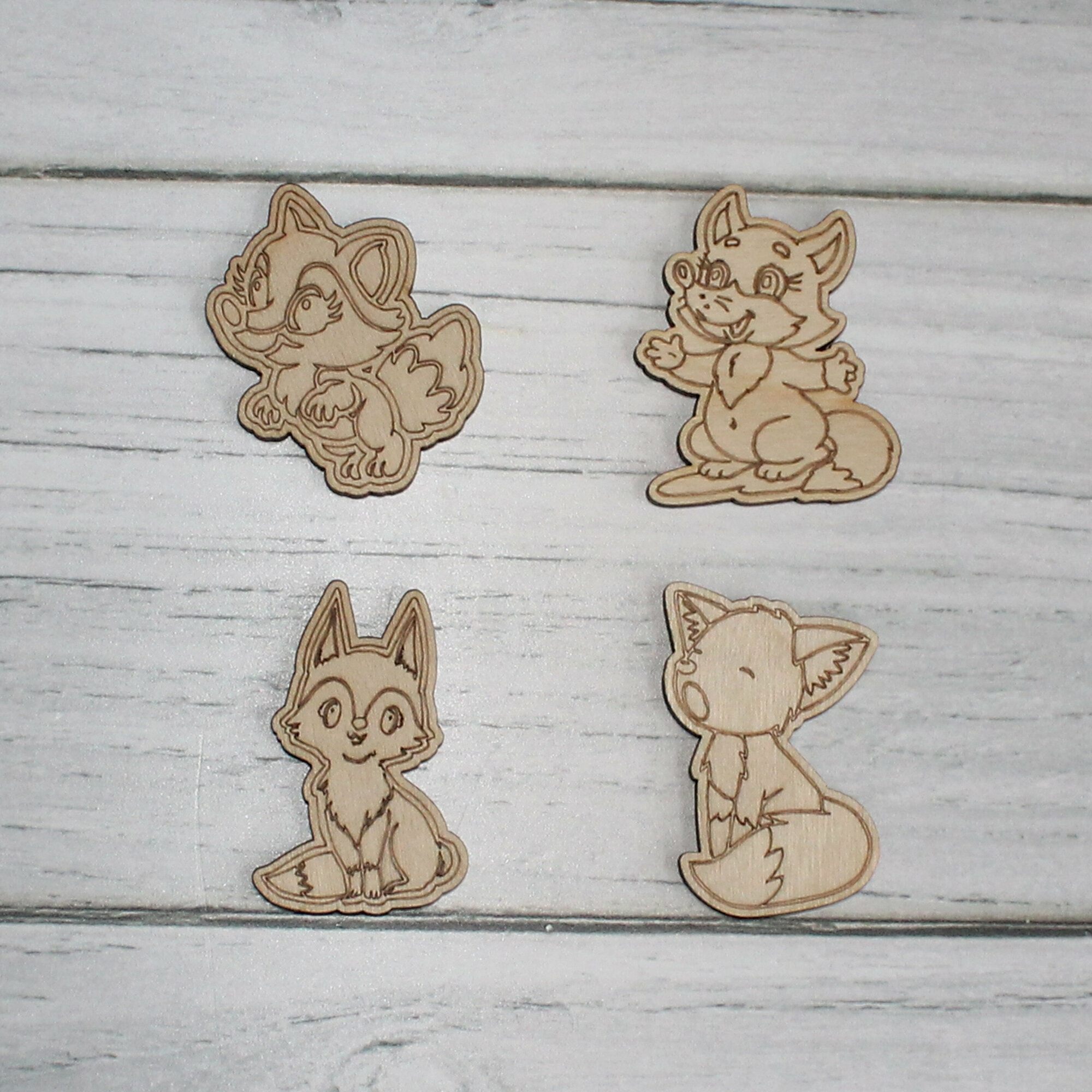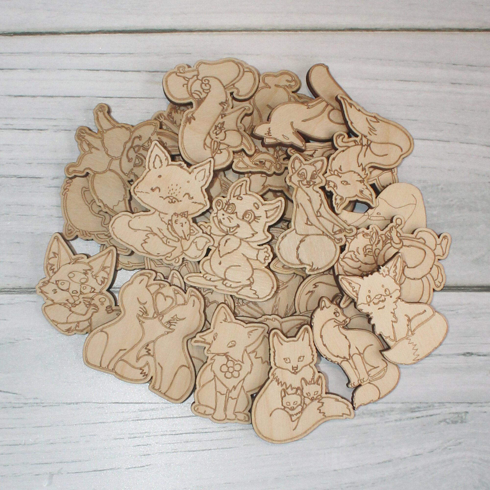 Деревянные заготовки для творчества, для значков, магнитов, брошей. Набор "Лисички №2" из 30 шт
