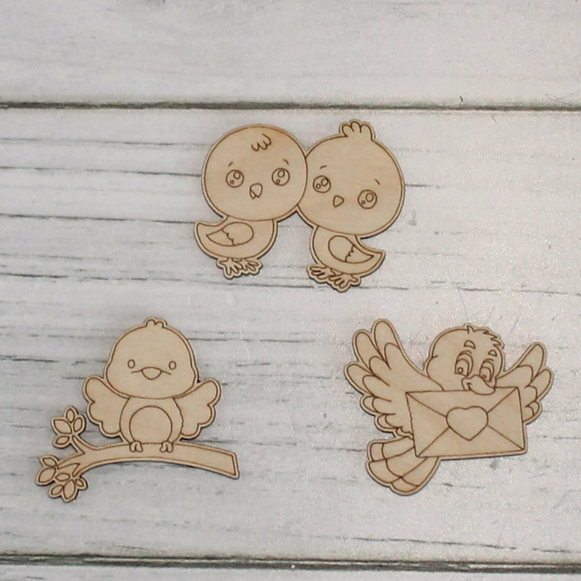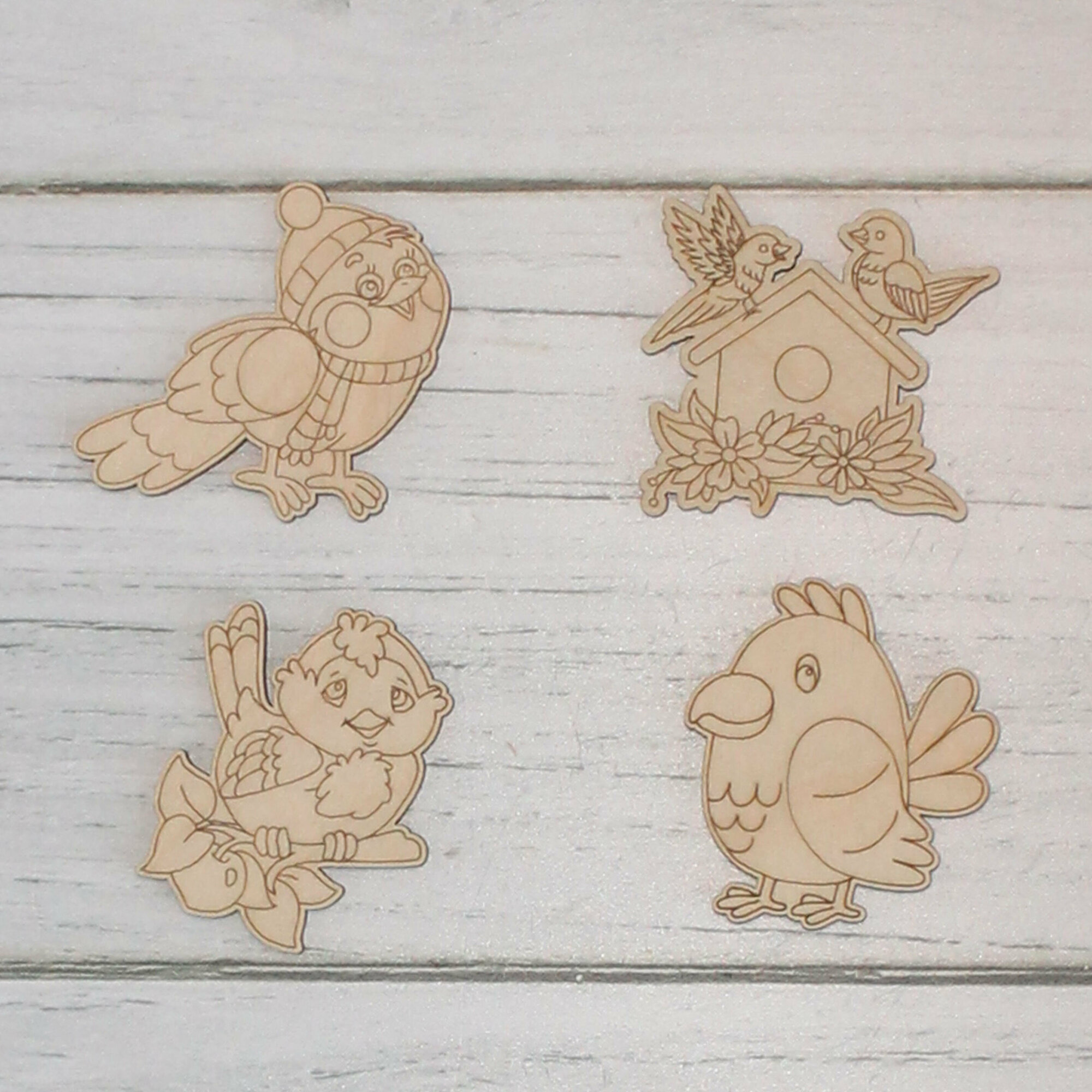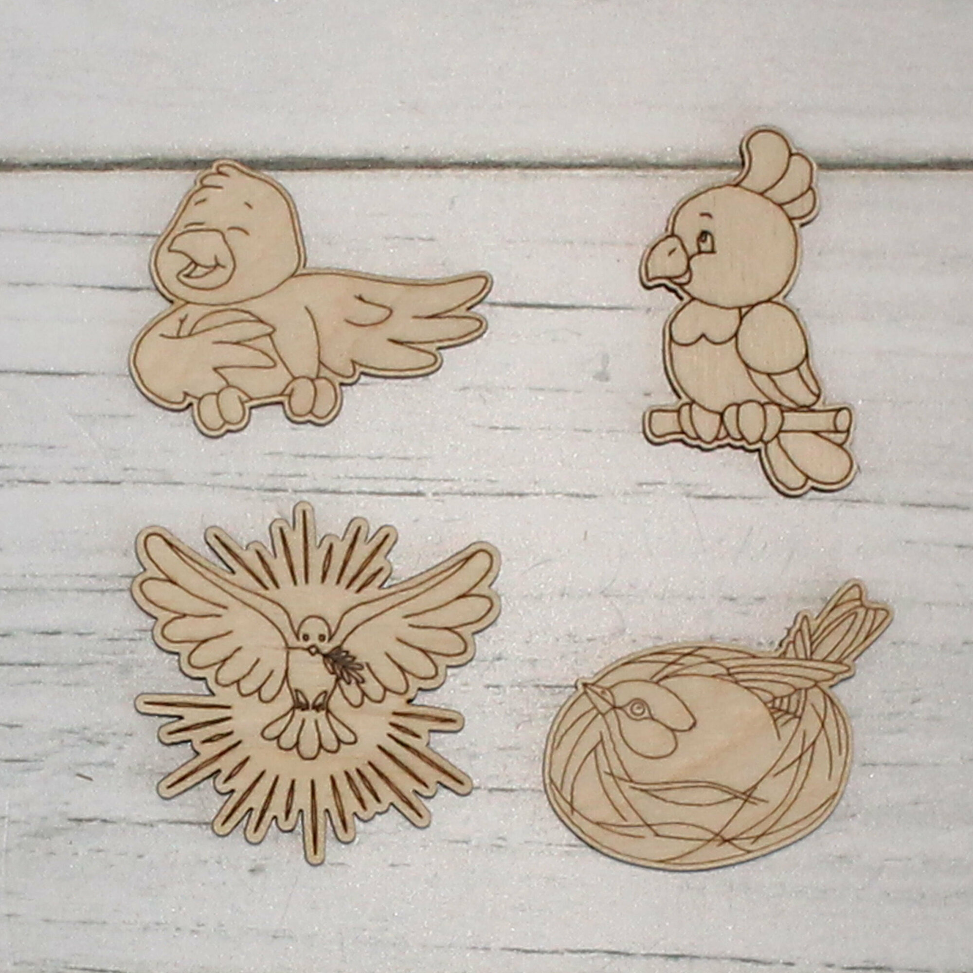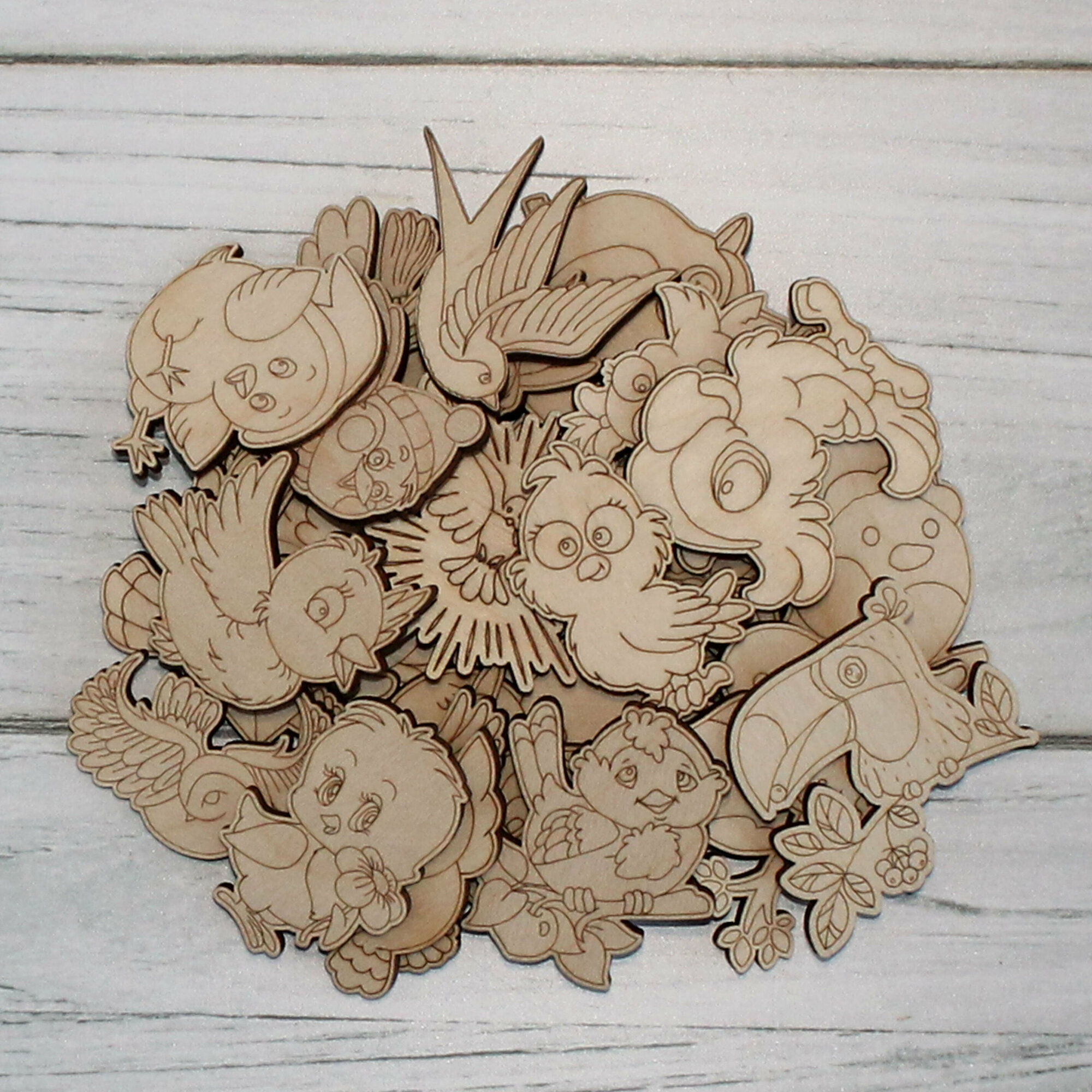 Купить Деревянные заготовки для творчества, для значков, магнитов, брошей. Набор "Птички" из 30 шт