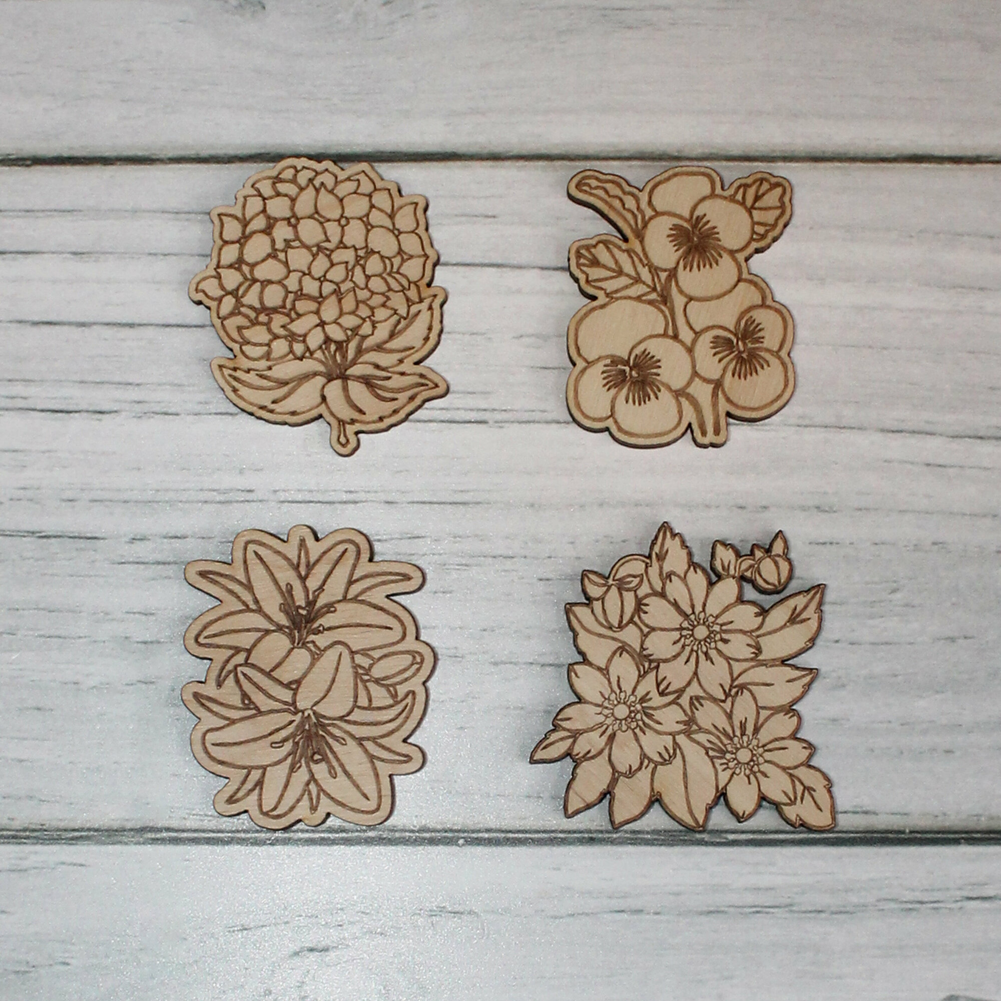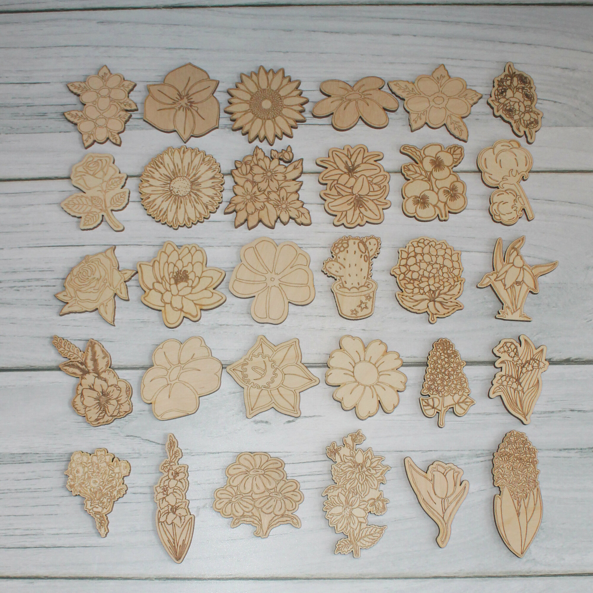 Купить Деревянные заготовки для творчества, для значков, магнитов, брошей. Набор "Цветы" из 30 шт
