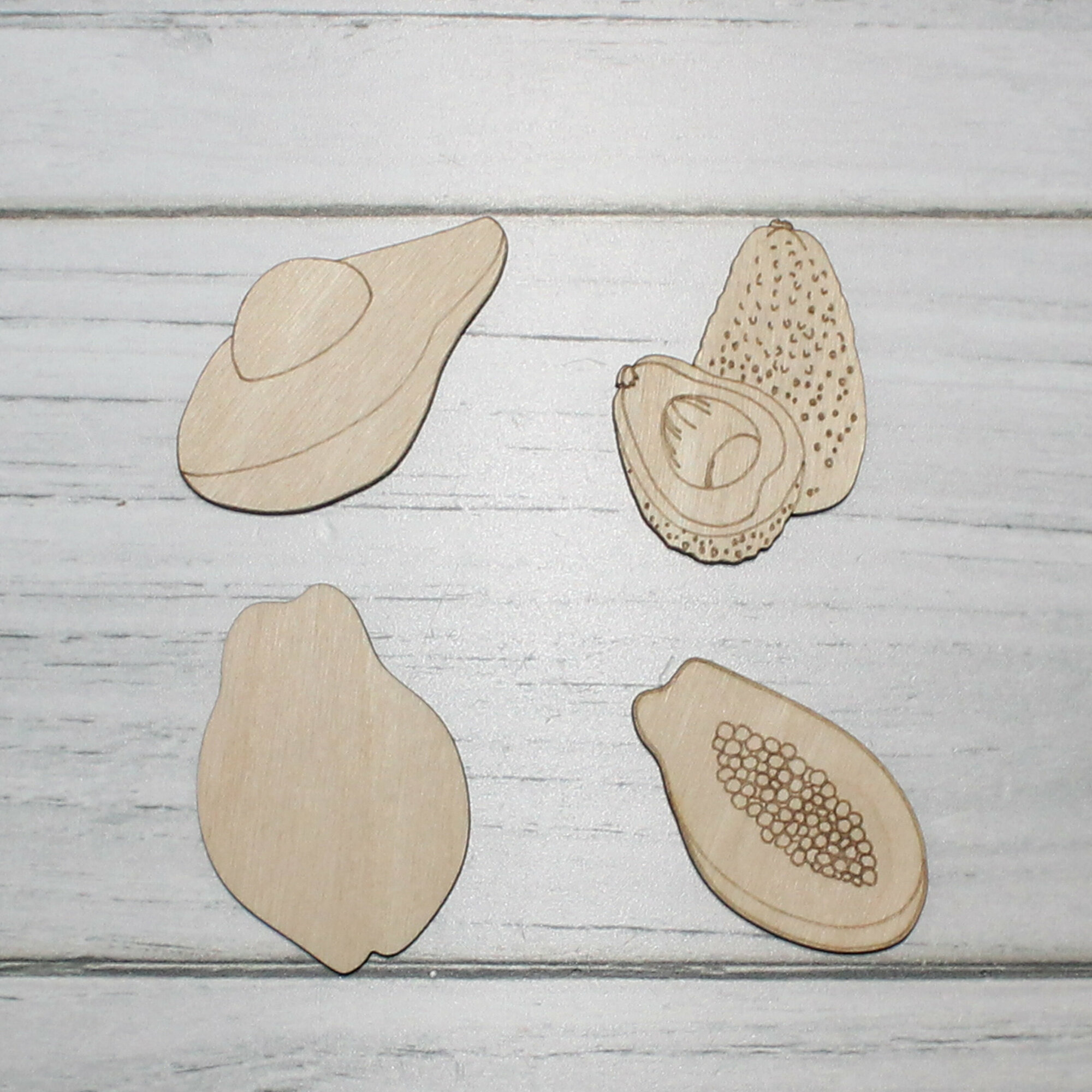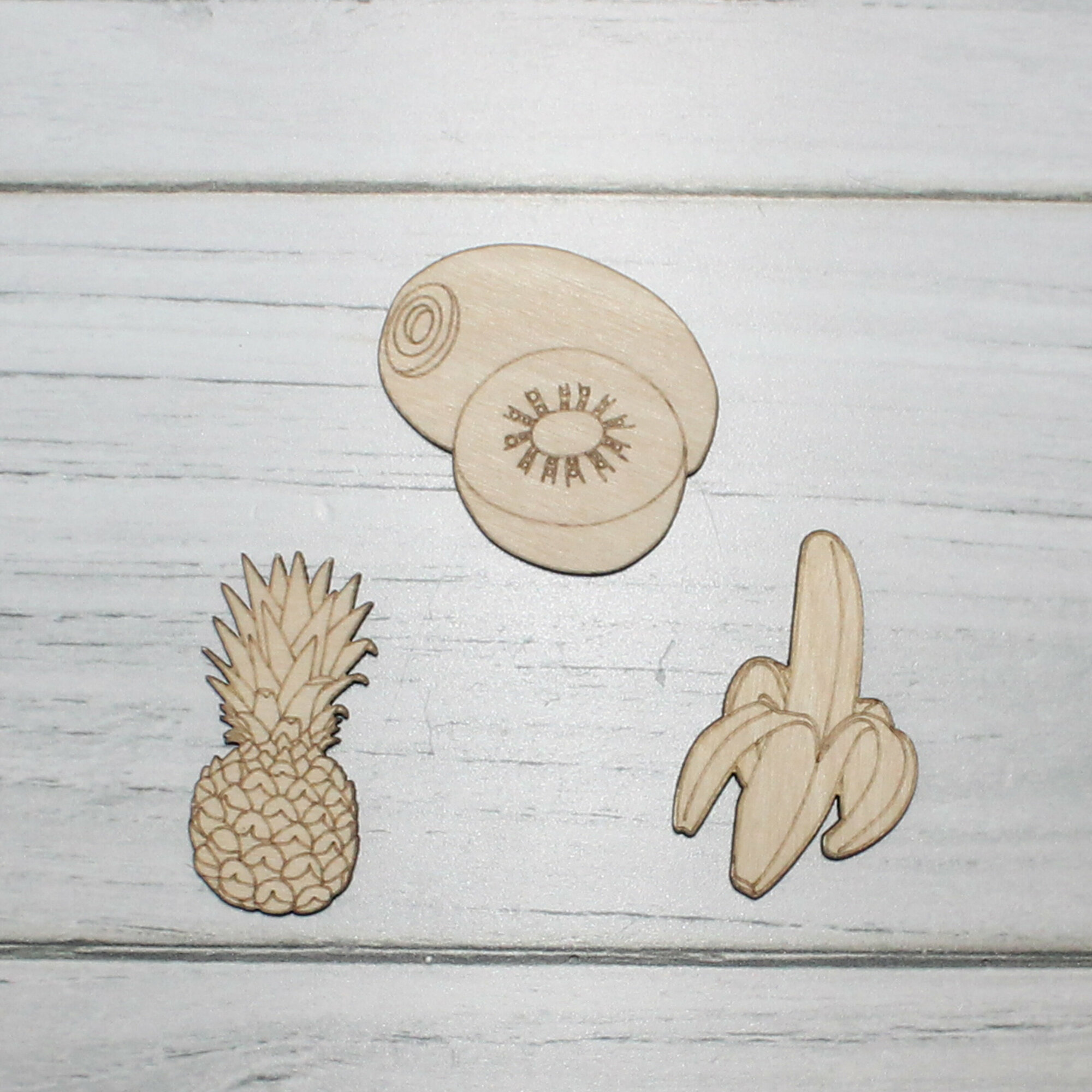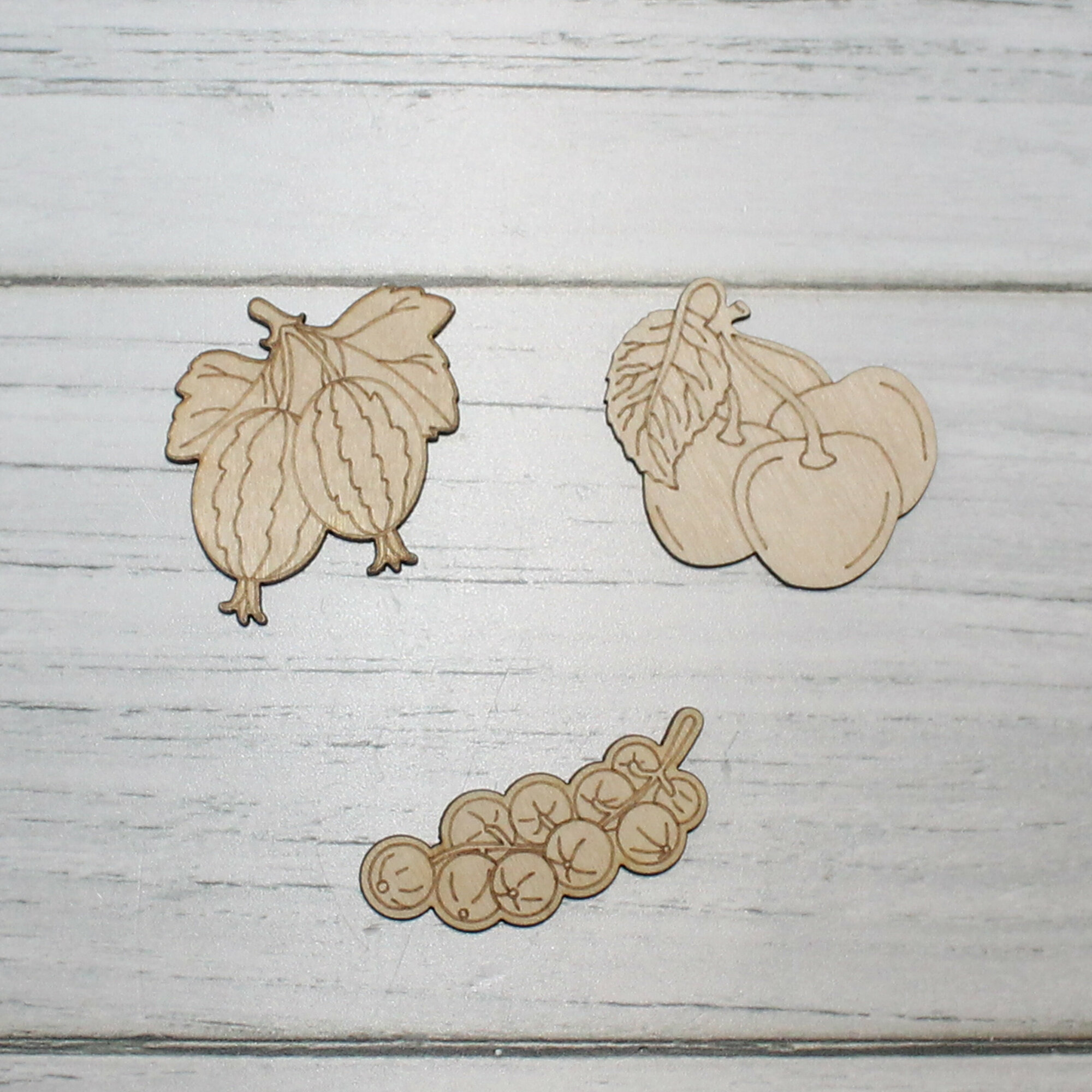 Купить Деревянные заготовки для творчества, для значков, магнитов, брошей. Набор "Фрукты, ягоды" из 30 шт