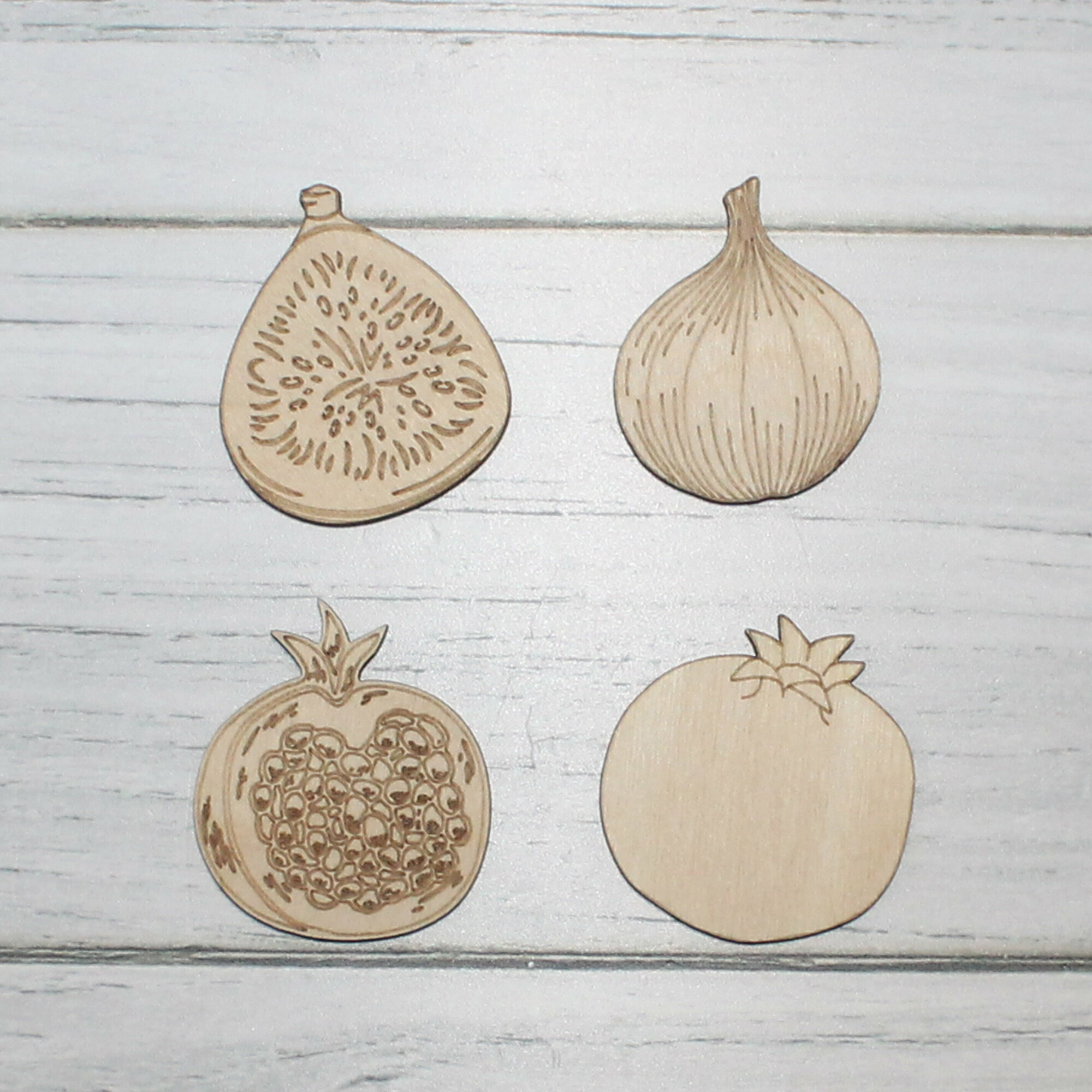 Деревянные заготовки для творчества, для значков, магнитов, брошей. Набор "Овощи" из 30 шт
