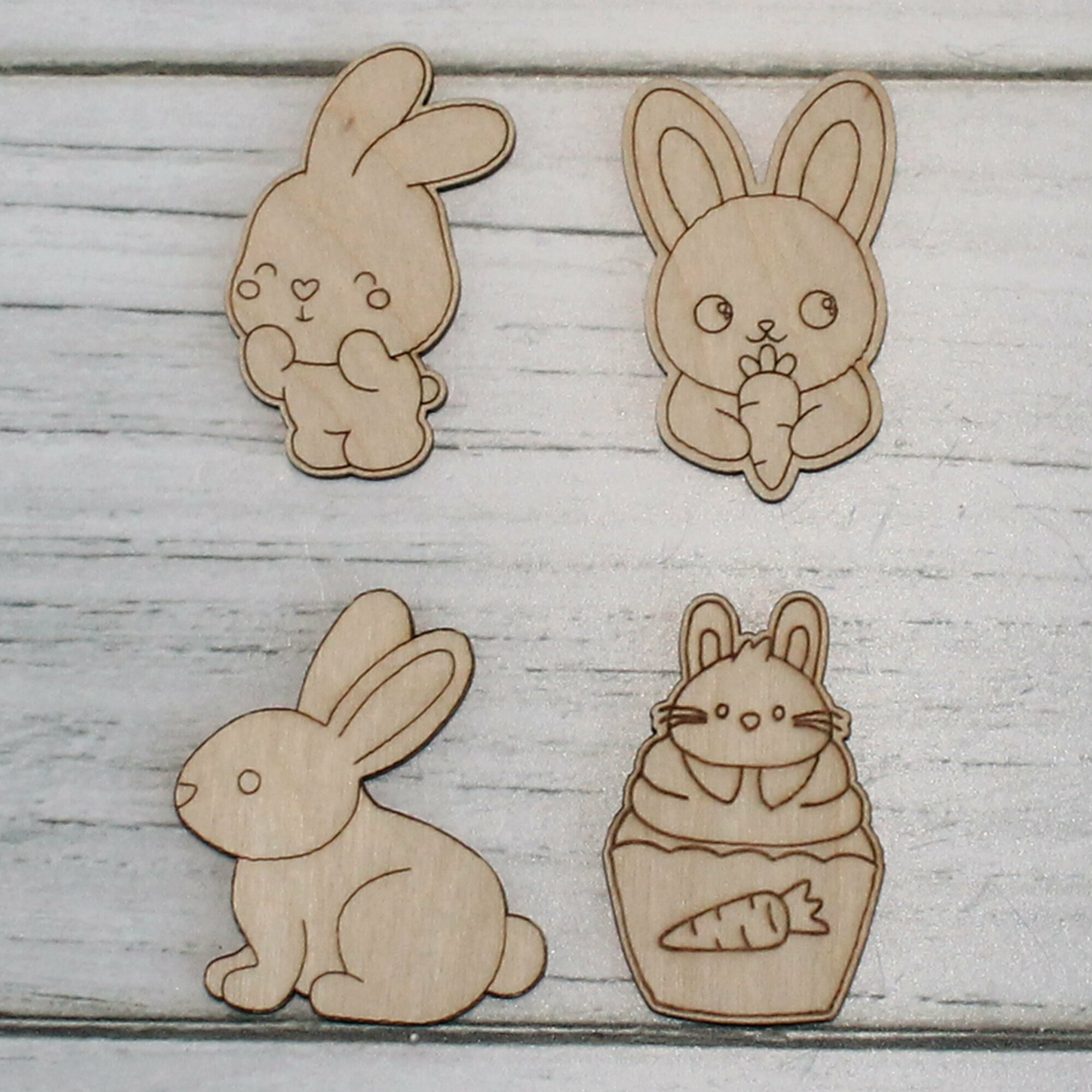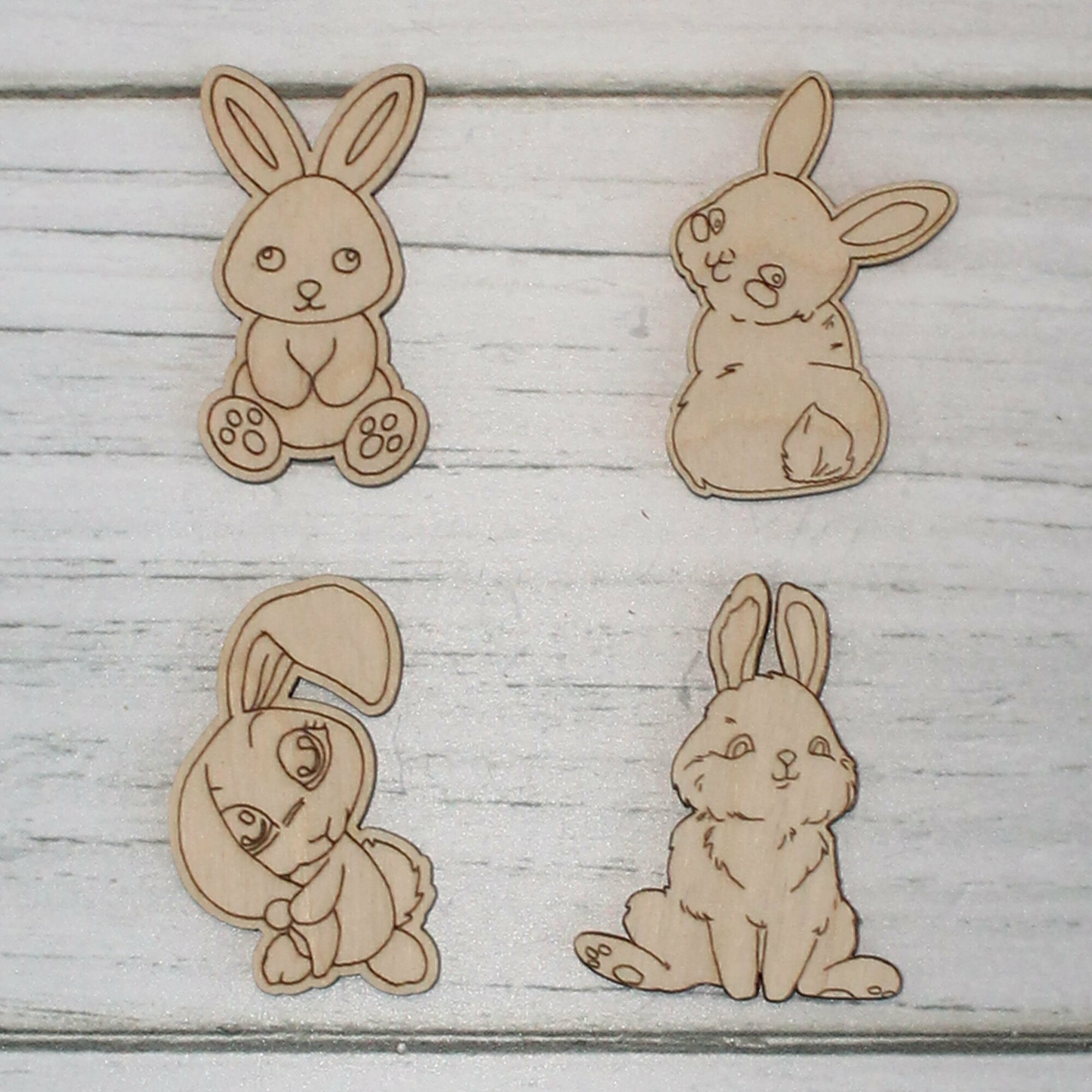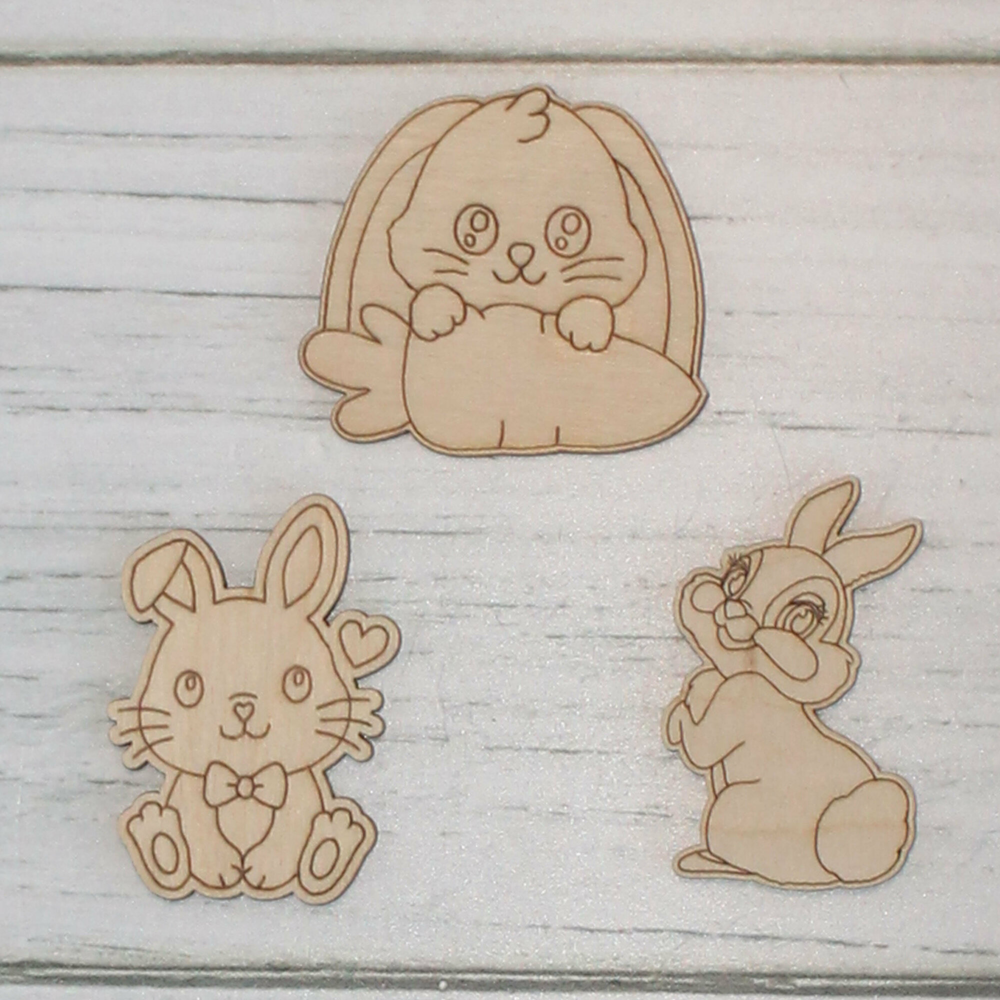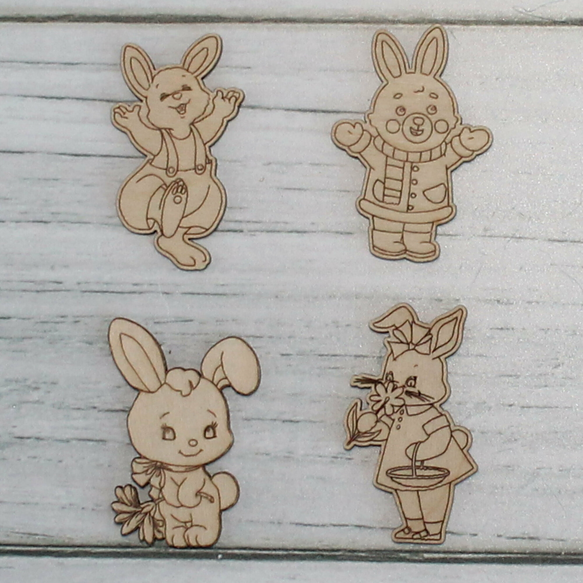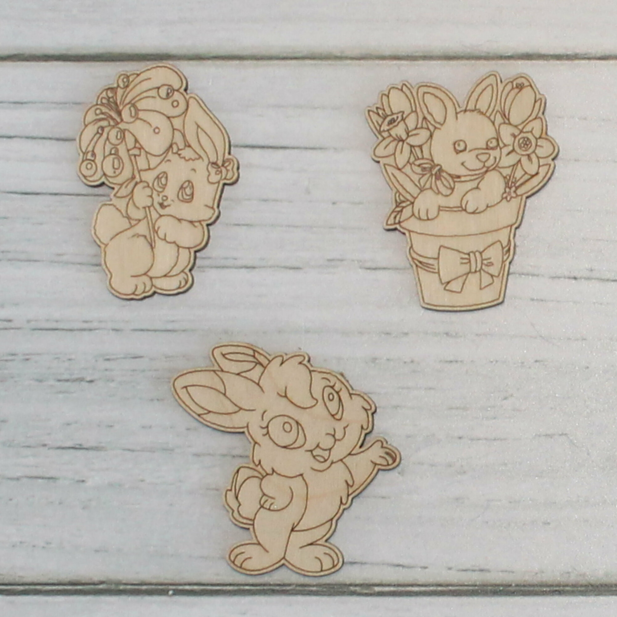 Купить Деревянные заготовки для творчества, для значков, магнитов, брошей. Набор "Зайчики" из 30 шт
