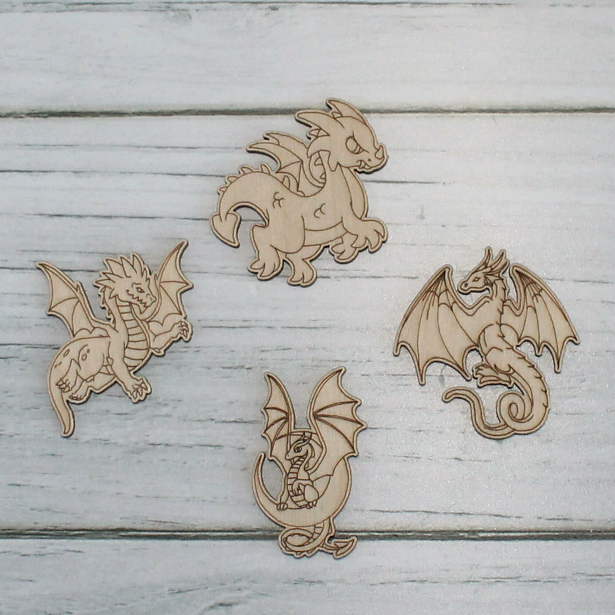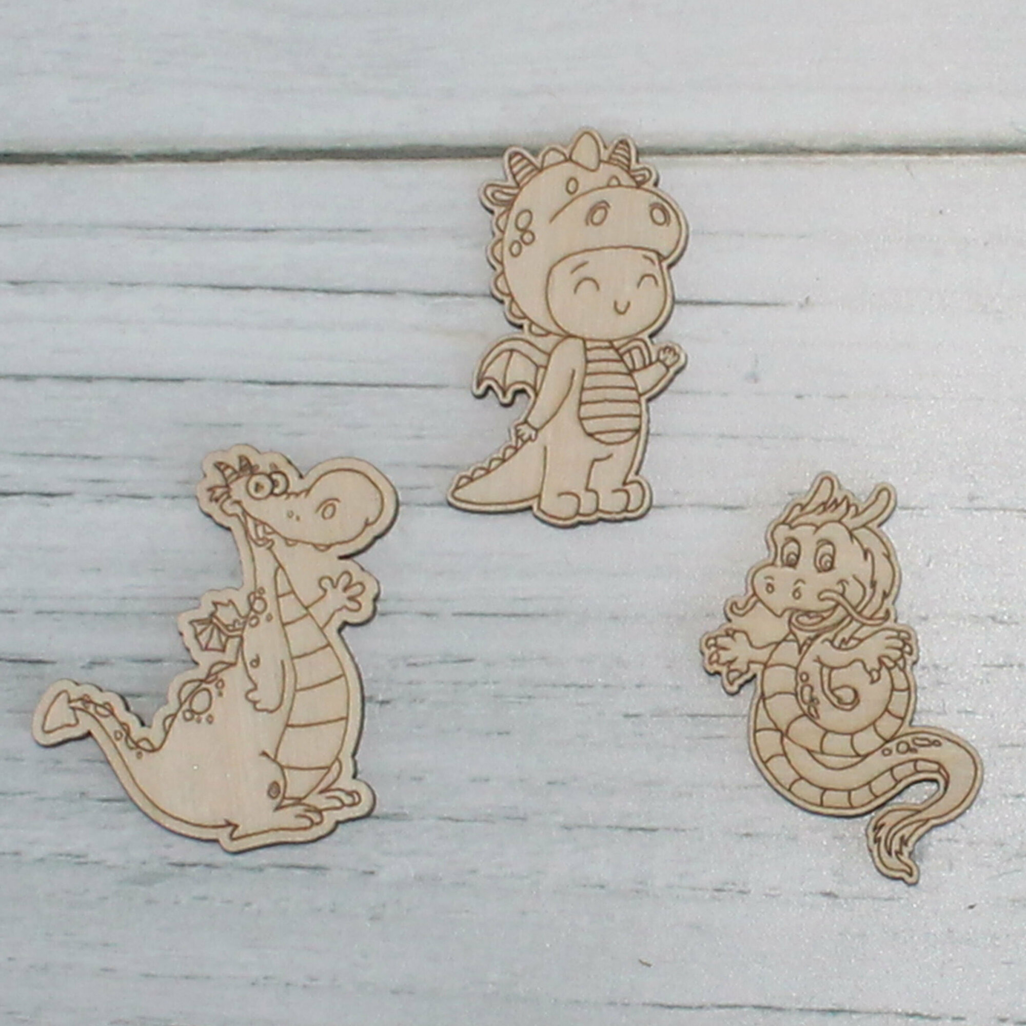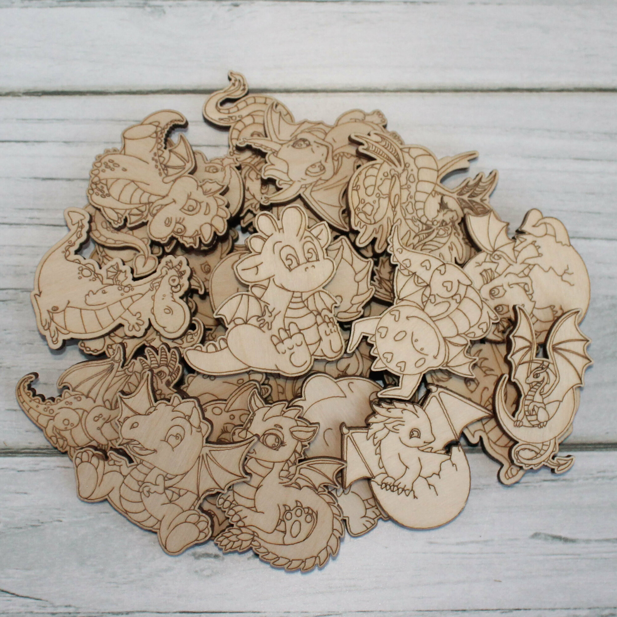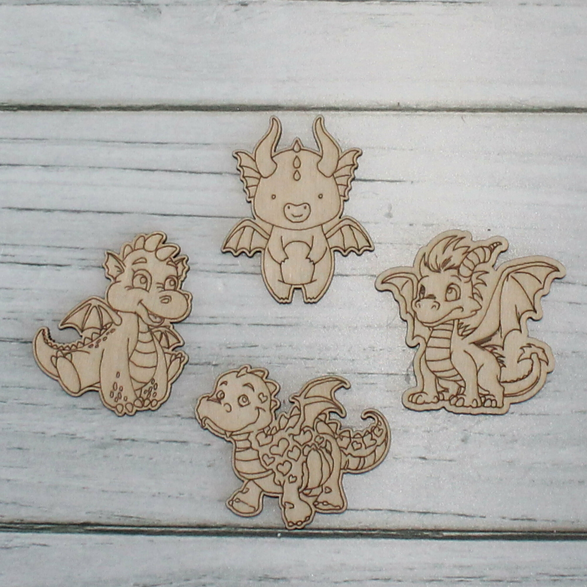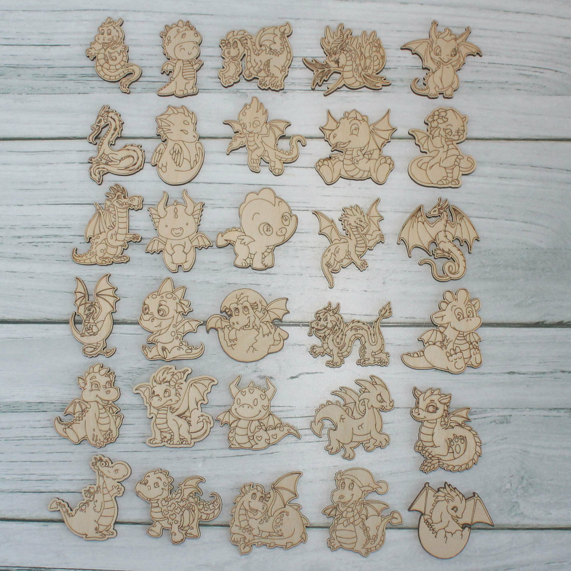 Деревянные заготовки для творчества, для значков, магнитов, брошей. Набор "Дракончики №2" из 30 шт