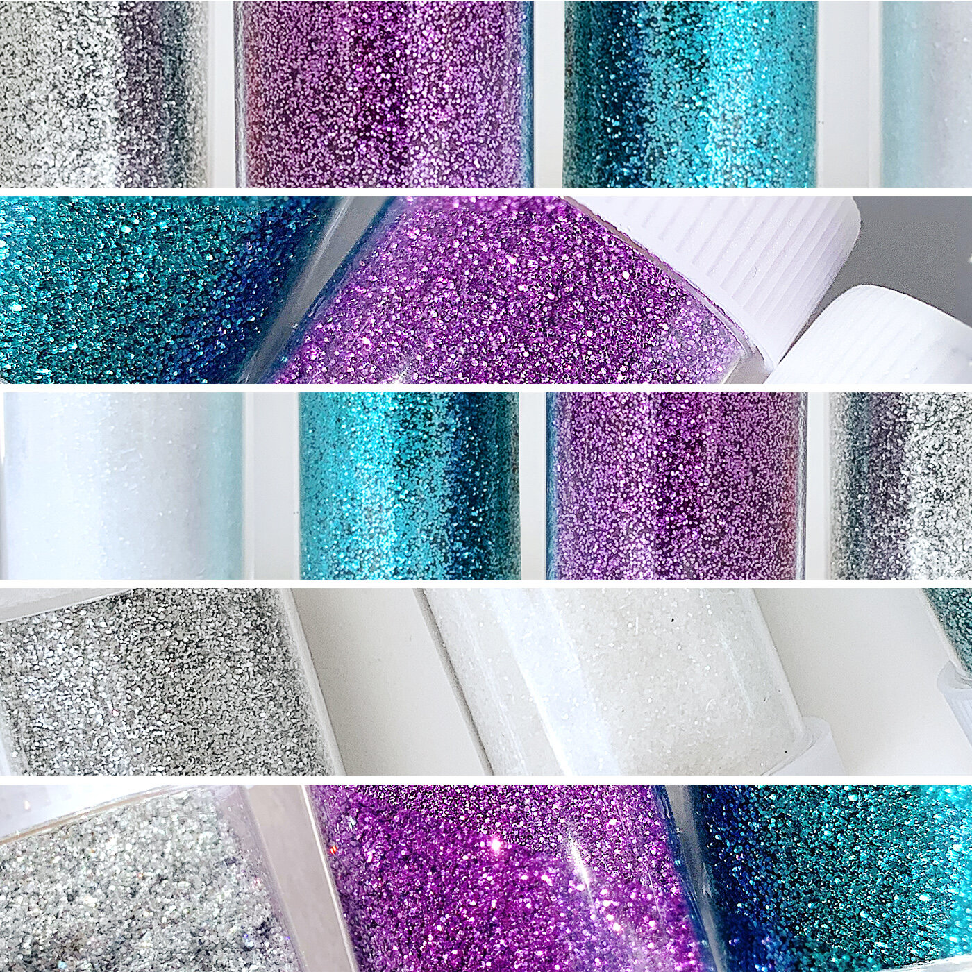 Купить Блестки для творчества (глиттер), декора, оформления, DIY, смолы, маникюра, сиреневый, бирюзовый, белый, серебряный металлик, набор 4 цвета №4, 4 шт. по 13 г