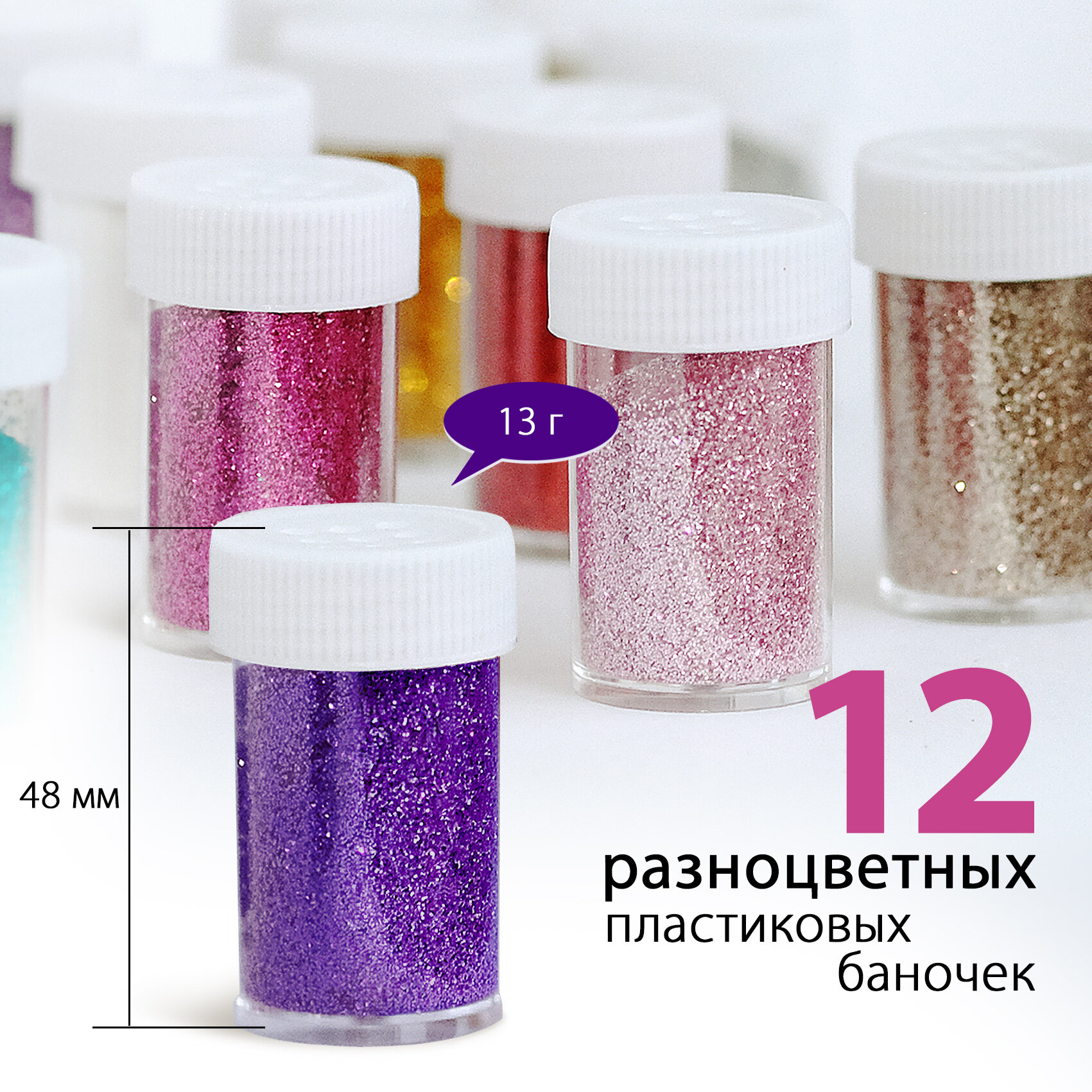 Блестки для творчества (глиттер) "Металлик", 12 штук разного цвета, по 13 г, набор №1