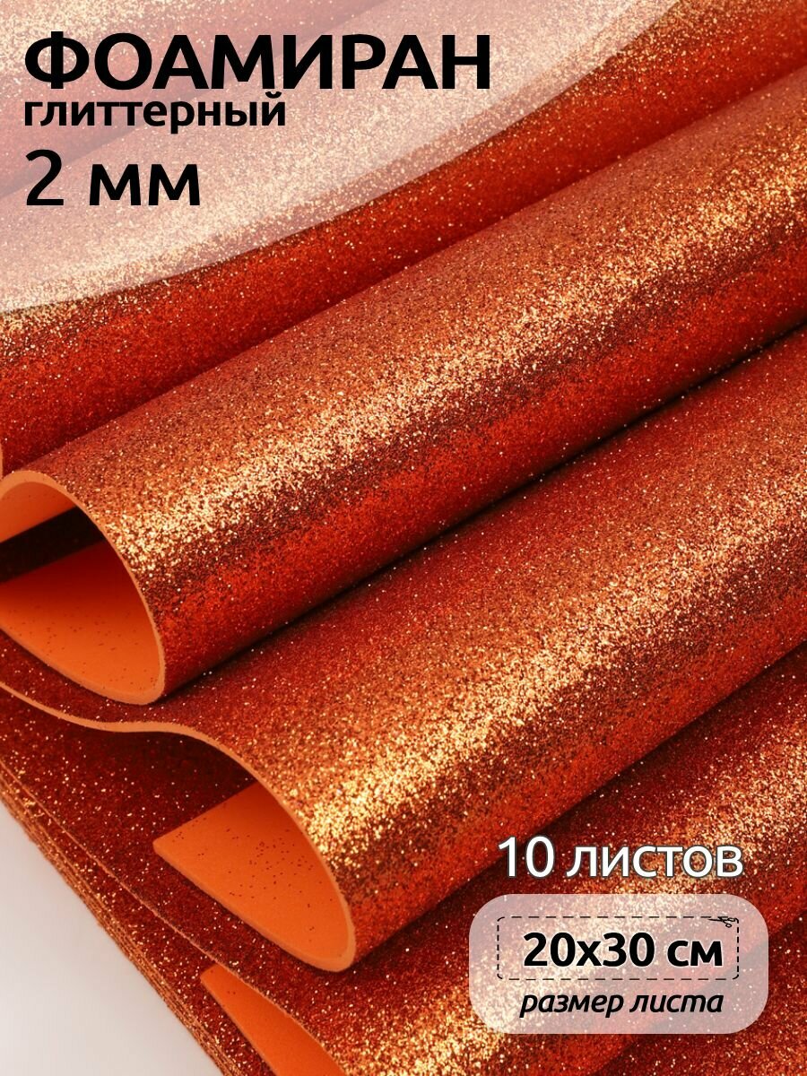 Фоамиран глиттерный Magic 4 Hobby 2 мм арт. MG. GLIT. H046 цв. оранжевый, 20х30 см