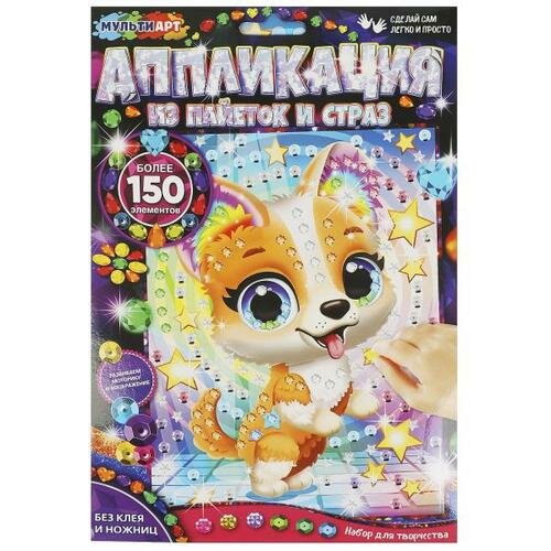 Купить MULTIART Набор для творчества. Аппликация из пайеток и страз. Песик (17*23см, в конверте, от 3 лет)