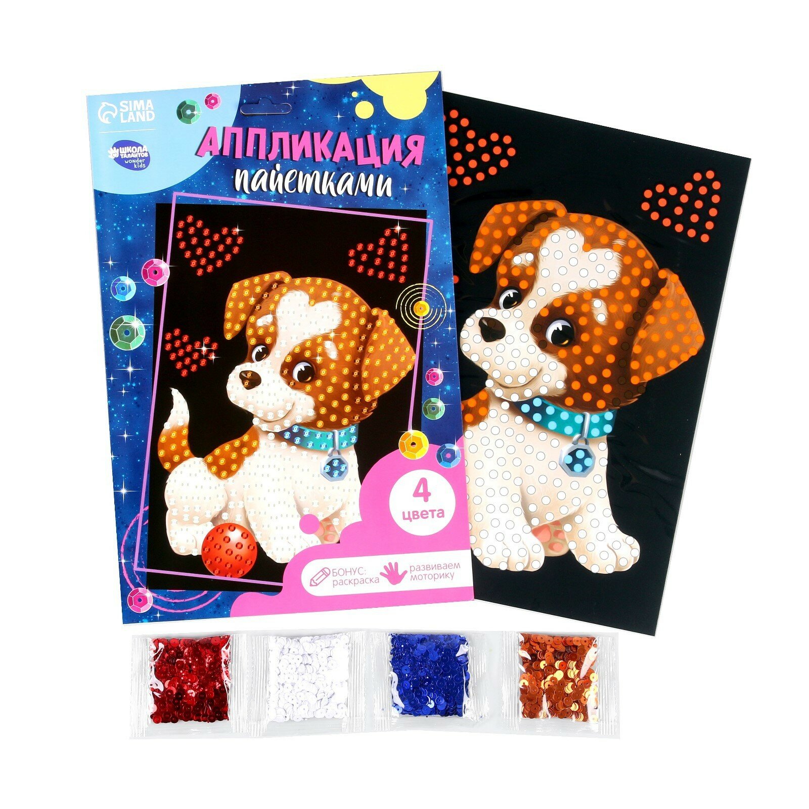 Купить Аппликация пайетками «Весёлый щенок» + 4 цвета пайеток по 7 грамм
