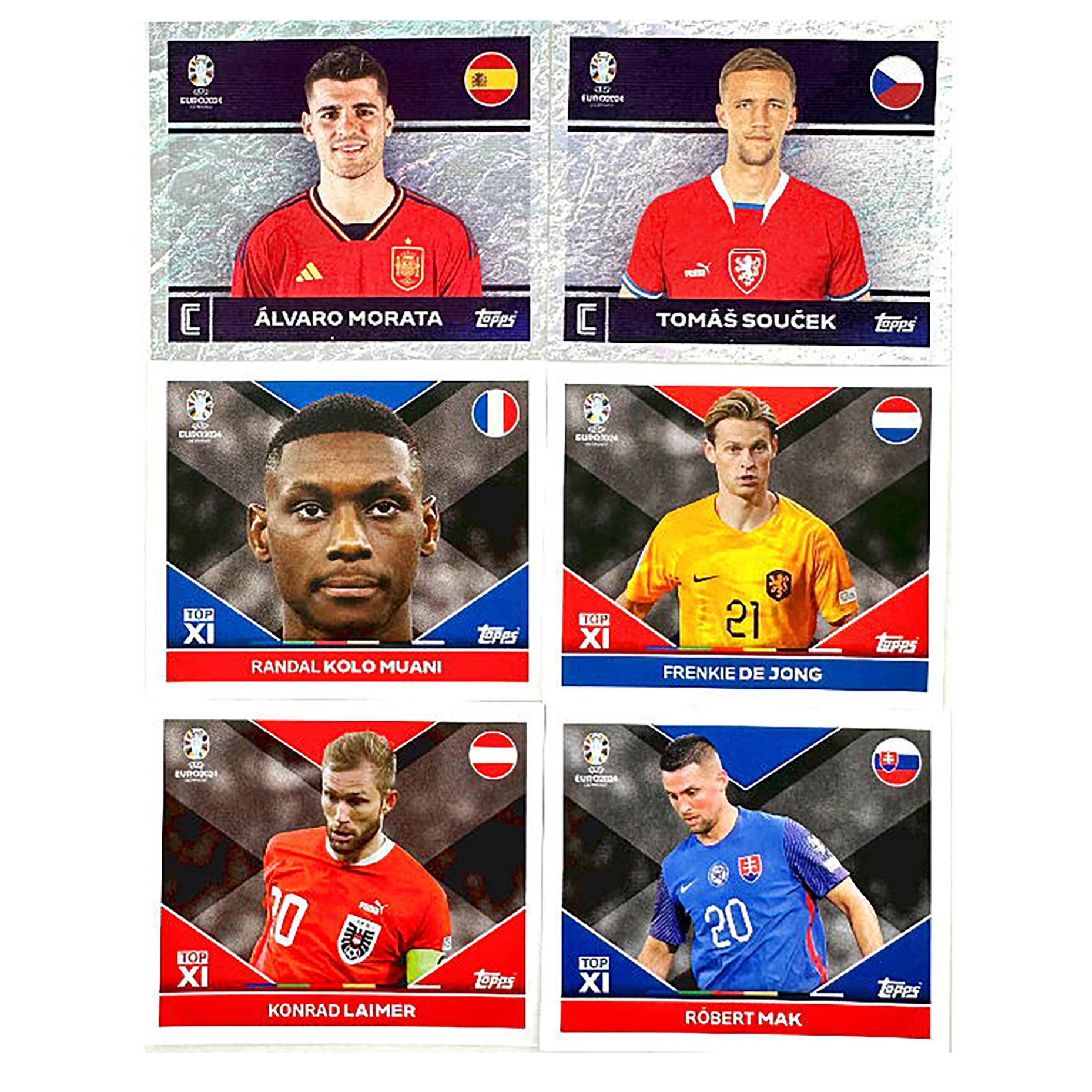 Наклейки TOPPS EURO 2024 в пакете, 7 пакетиков (42 наклейки)