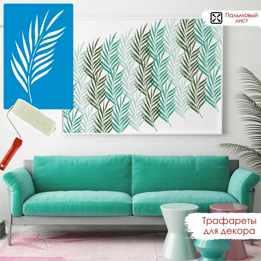 Купить Трафарет для дизайна и декора стен Пальмовый лист. Трафарет для творчества, пластиковый, многоразовый, прочный. Пластик 0,5 мм.