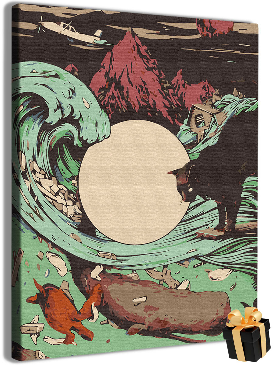 Картина по номерам "Закат на море и черный кот" холст на подрамнике 40х50 интересное: