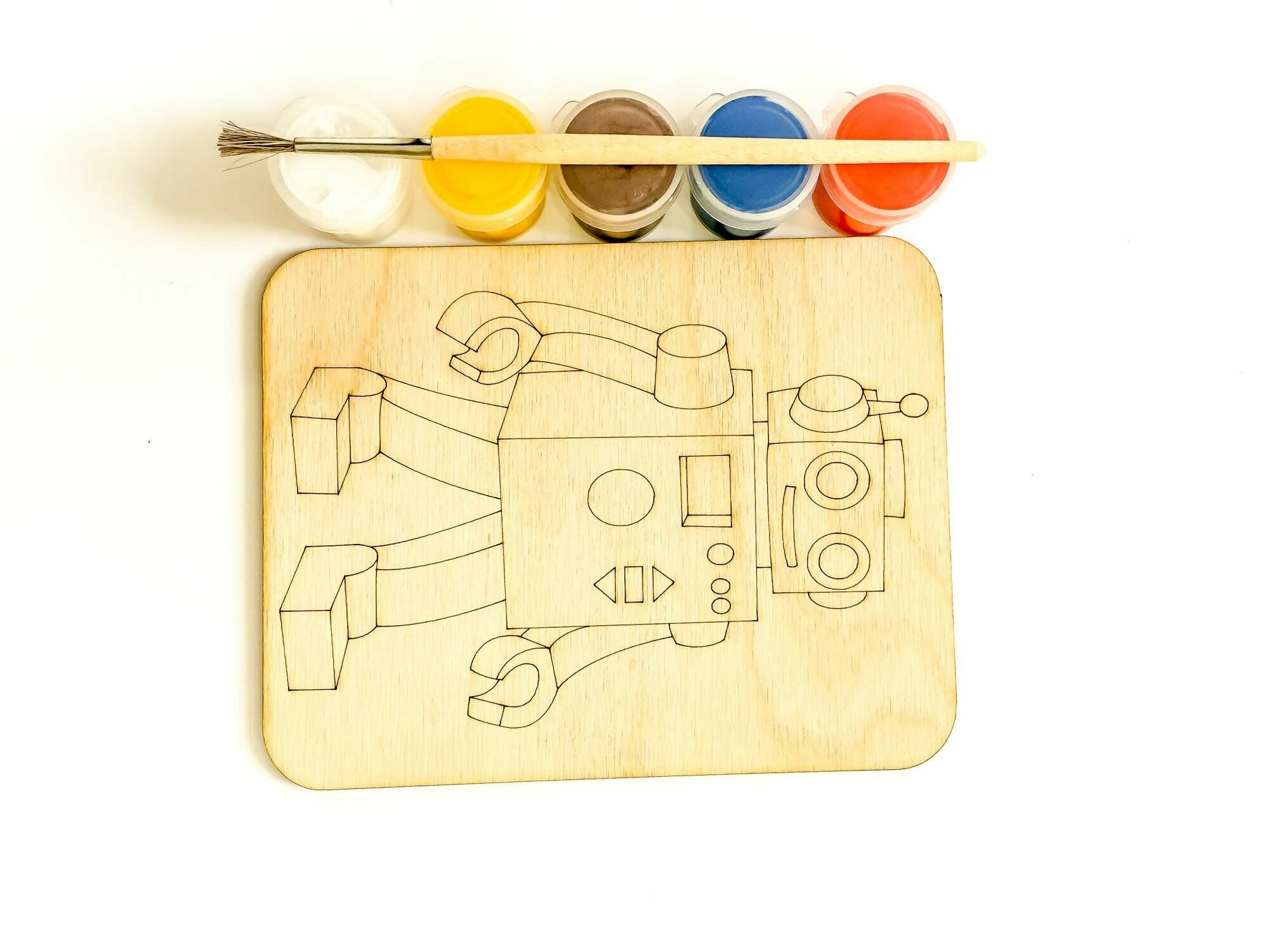 Дощечка под роспись "Робот" с красками и кисточкой арт.7813 (11*14 см.) интересное: