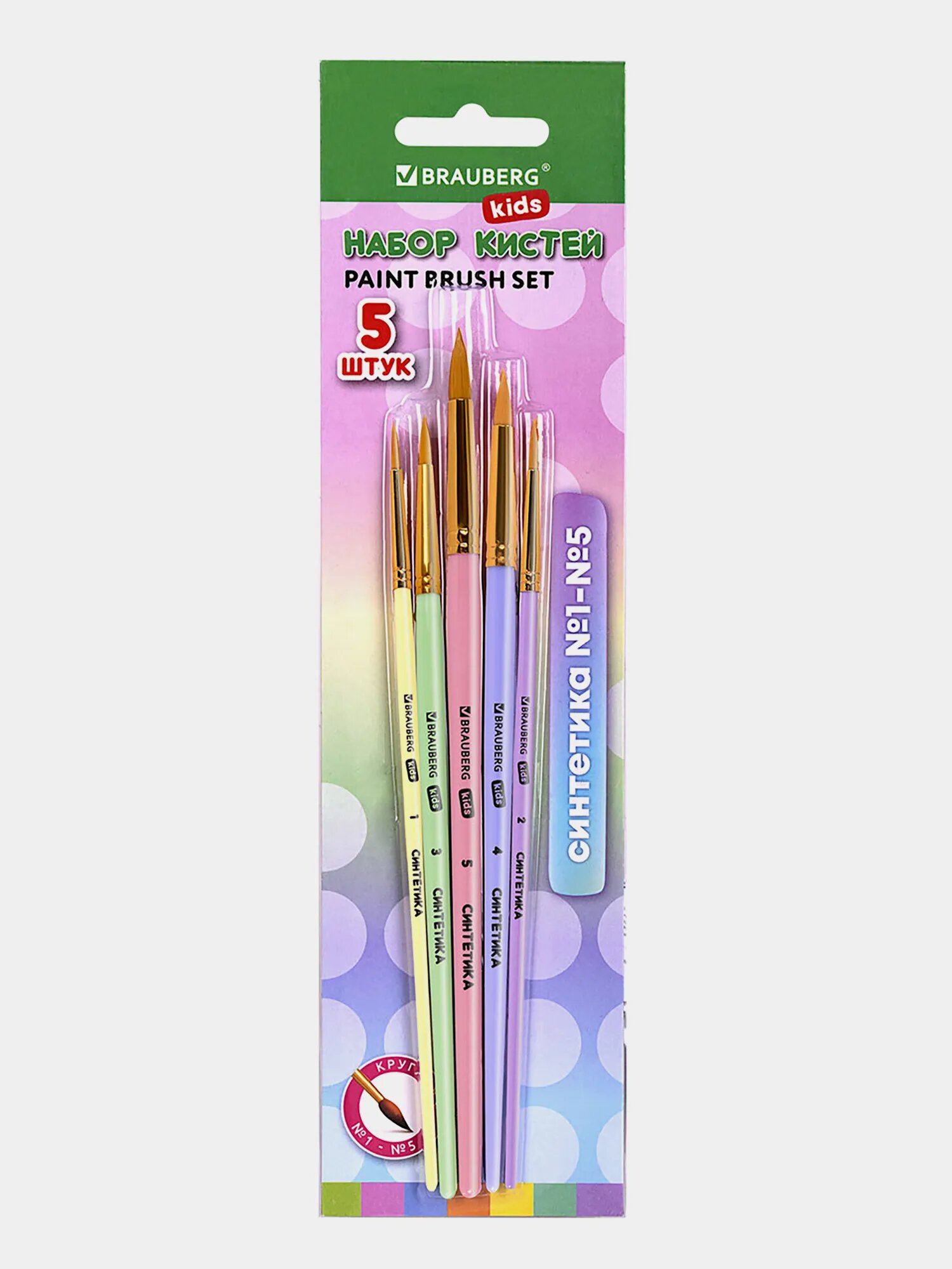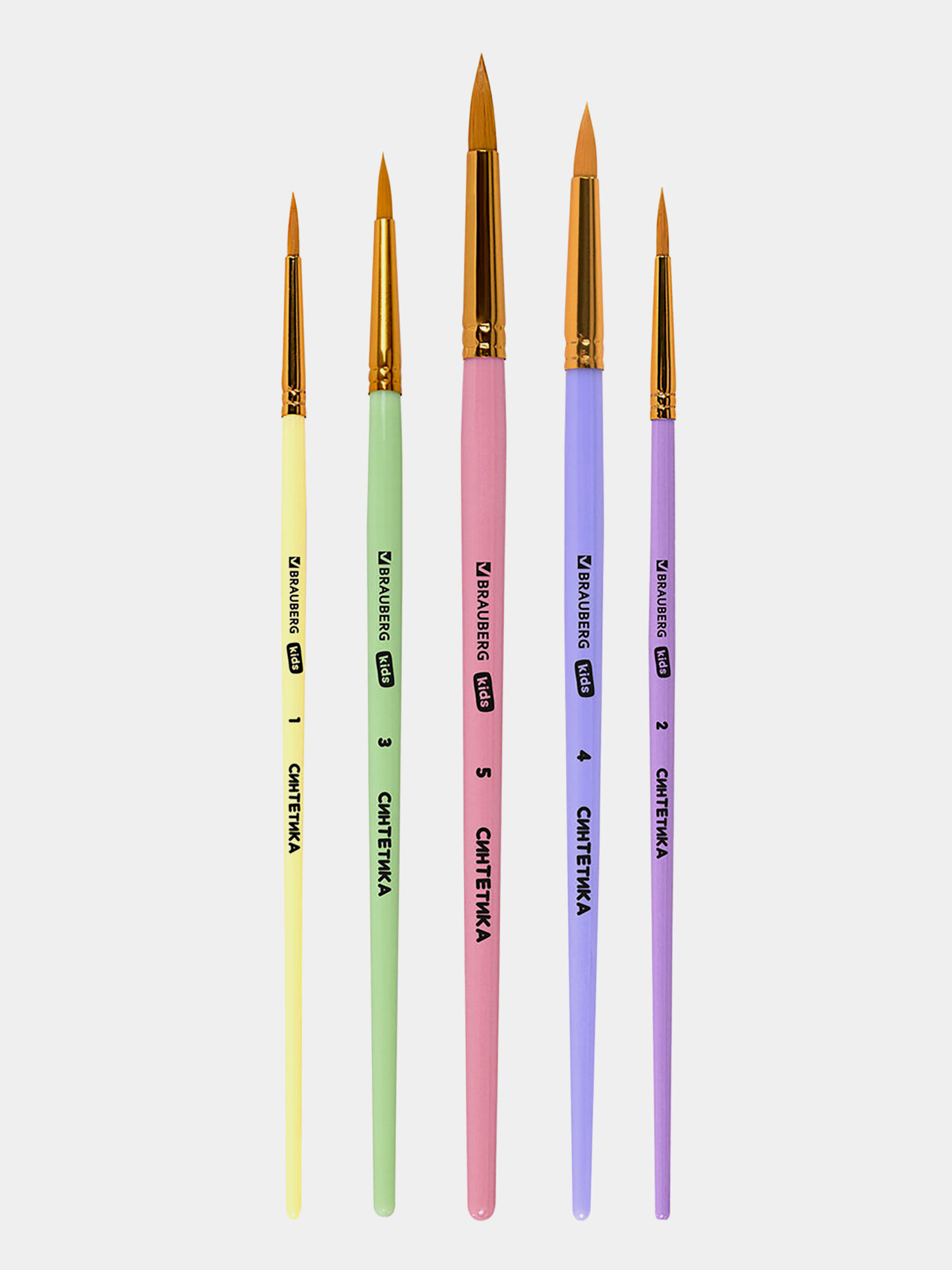 Кисти для рисования в школу набор 5 штук, кисточки круглые № 1 2 3 4 5, синтетика, Brauberg Kids, 201076 интересное: