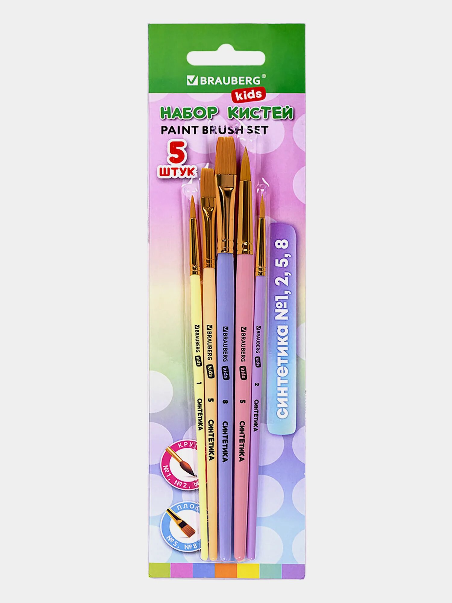 Кисти для рисования в школу набор 5 штук, кисточки круглые № 1 2 5, плоские № 5 8, синтетика, Brauberg Kids, 201075 интересное: