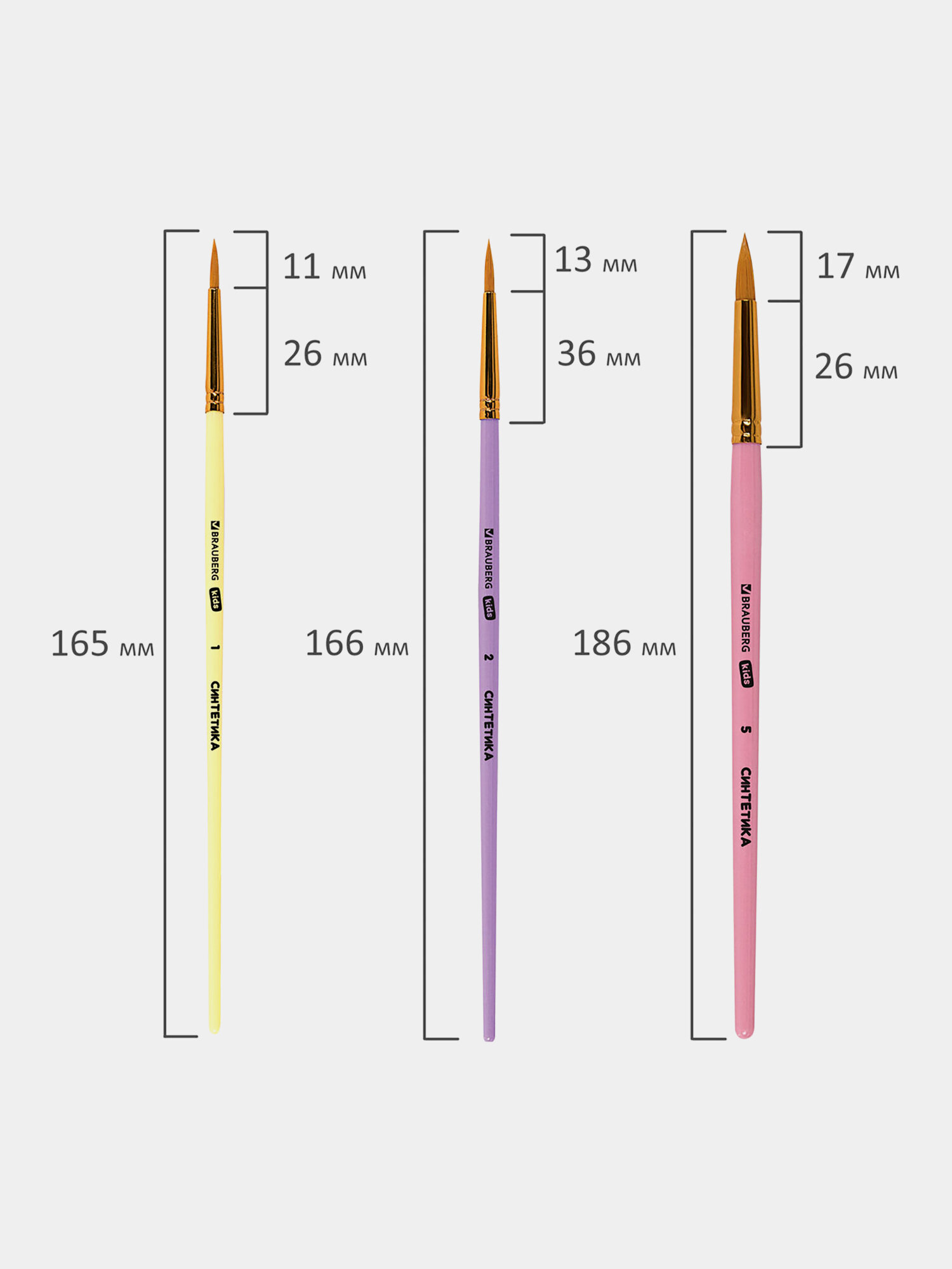 Кисти для рисования в школу набор 5 штук, кисточки круглые № 1 2 3 4 5, синтетика, Brauberg Kids, 201076