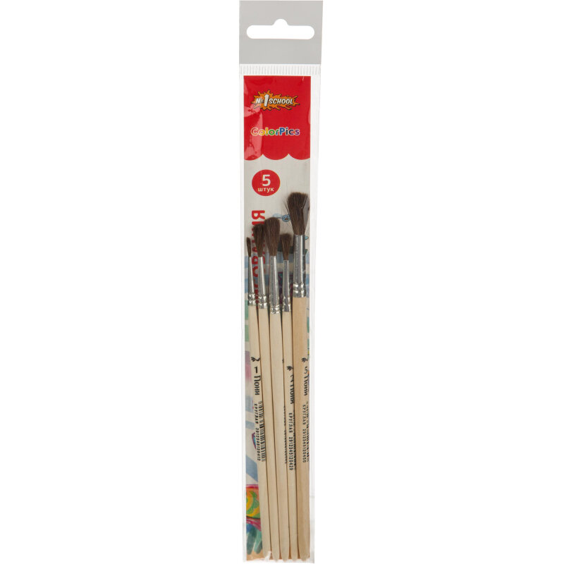 Купить Кисти №1 School "ColorPics", пони круглые №1, 2, 3, 4, 5, 5 шт