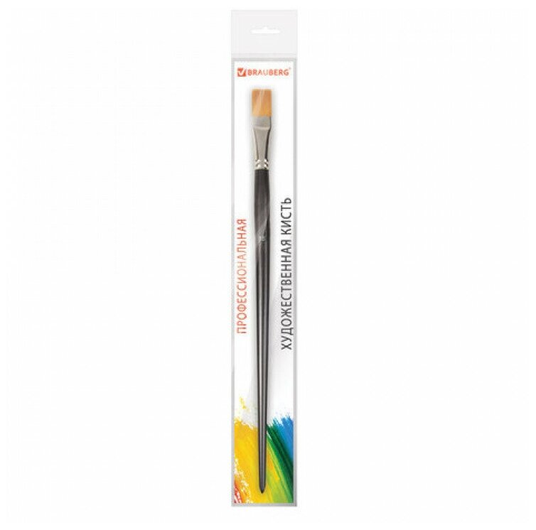 Кисть художественная профессиональная BRAUBERG ART "CLASSIC", синтетика жесткая, плоская, № 18, длинная ручка, 200671 интересное: