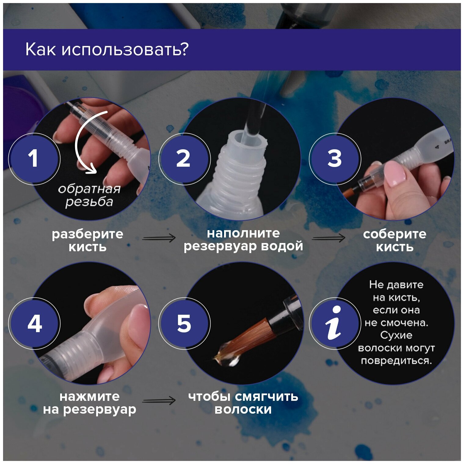 СохранитьКисти / кисточки художественные профессиональные синтетические для рисования с резервуаром для воды, набор 6 штук, Brauberg Art Debut, 200965 интересное:
