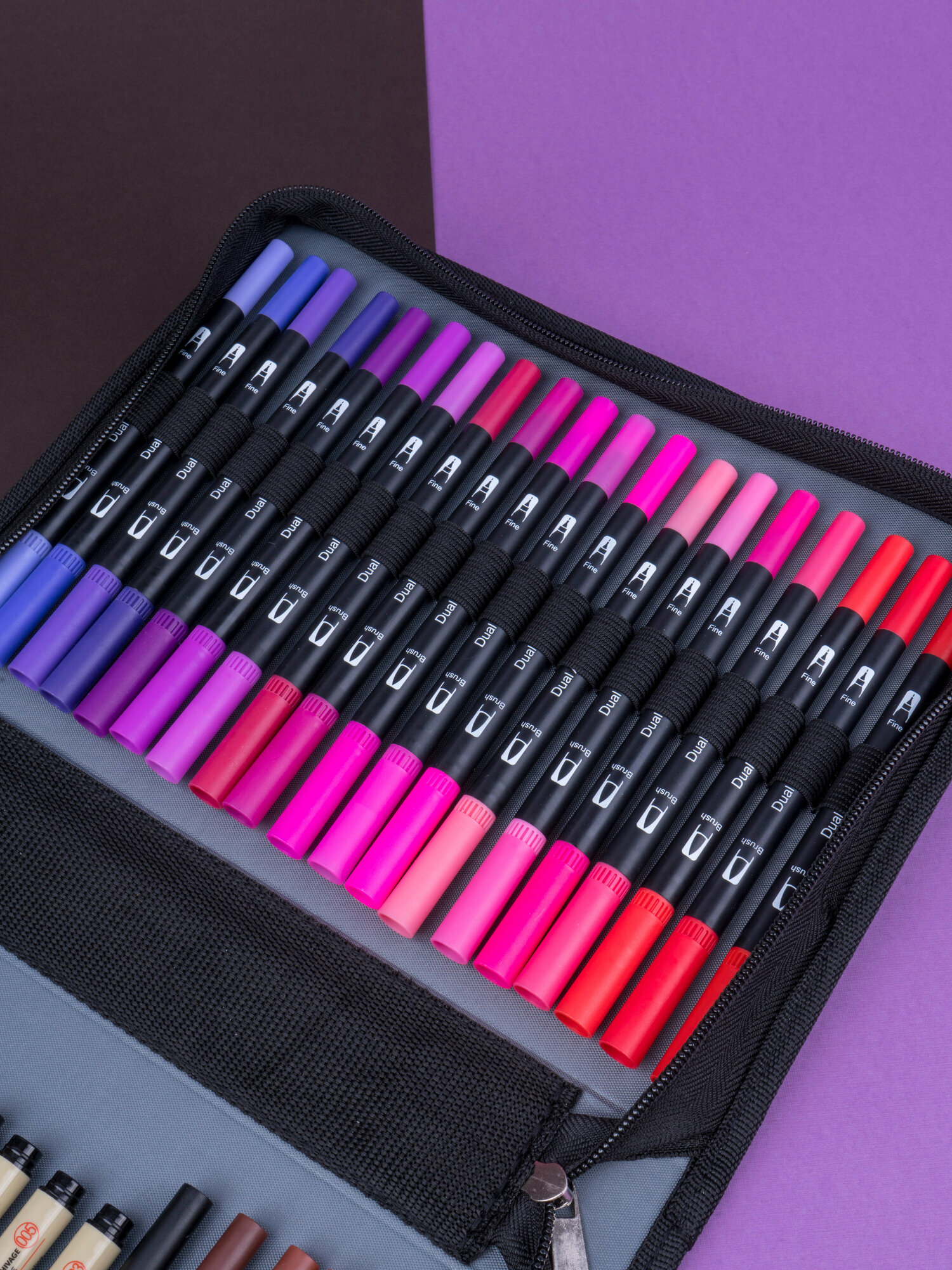 Купить Подарочный набор двухсторонних фломастеров и линеров для рисования творчества 72 шт