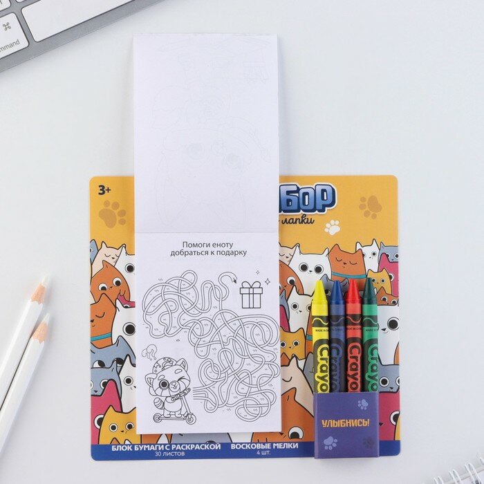 Купить Набор: блок листов с раскраской и восковые мелки «Коты»