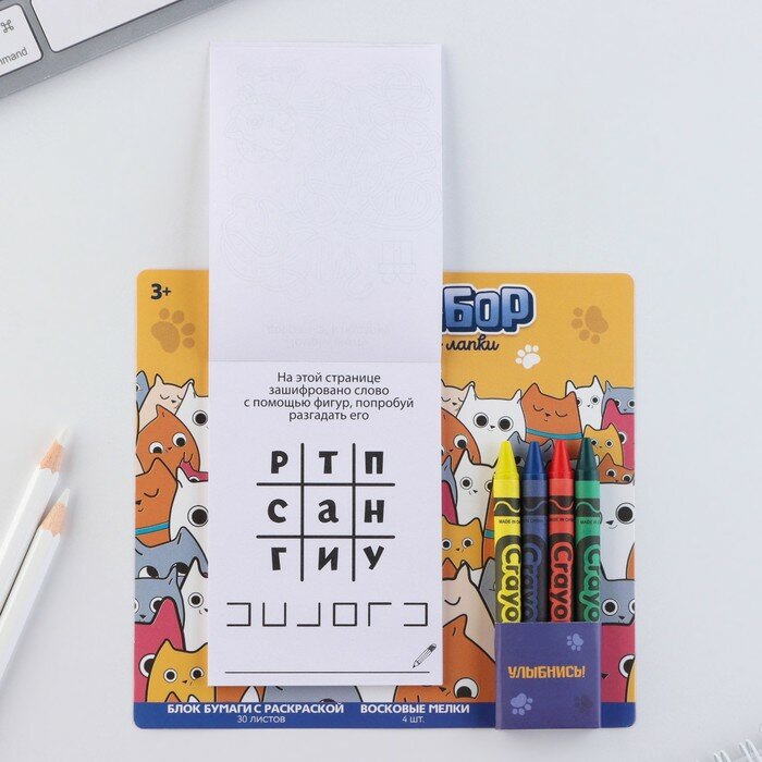 Набор: блок листов с раскраской и восковые мелки «Коты» интересное: